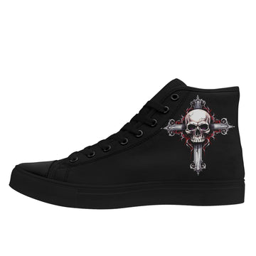 Gothic High Top Cross Skull Sneakers | Punk Rock Canvas Shoes | Alternative Fashion, Halloween Gift | FN024-25023066-5