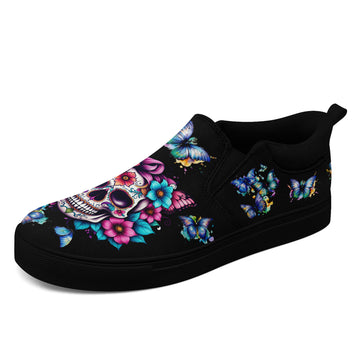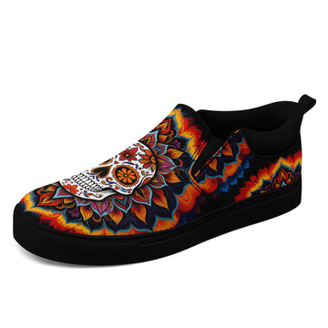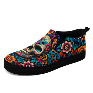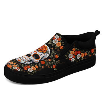 Sugar Skull Floral Slip-On Shoes | Day of the Dead Sneakers | FN071-25027001-1
