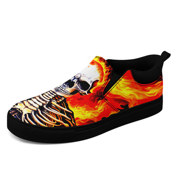 Fire Skull Horror Slip-On Shoes | Skull Print Sneakers | Halloween Gift For Goth fans | FN071-25023022-1