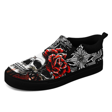Toponepod Rose Skull Slip on Shoes | Gothic Floral Sneakers For Alternative Fashion Cosplay Festival, Halloween| FN067-25028032-10