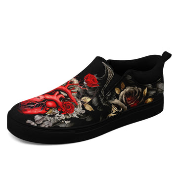 Heart Rose Floral Slip-On Shoes | Gothic Art Floral Canvas Sneakers | Wedding, Birthday, Valentine, Halloween Gift