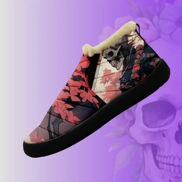 Men's Gothic Casual Loafers, Skull Canvas Fur Lined Slip On Shoes Moccasins Confortable Lace Up Warm Winter Shoes for Women