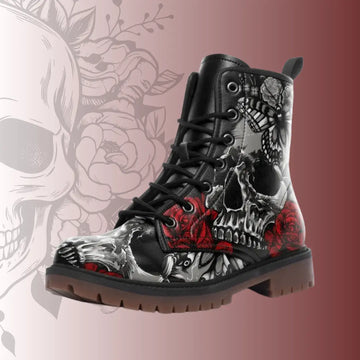 Gothic Skull Combat Boots | Raven Rose Skull Black Boots | Halloween Gift For Goth fans | BOOTS-25027041-10