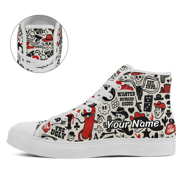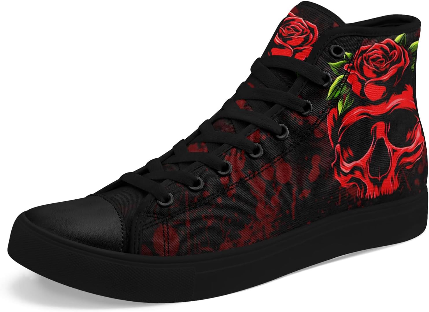 Mens High Top Sneakers Lace-Up Gothic Designed Casual Steet Canvas Shoes for Women Red and Black Skull Shoes