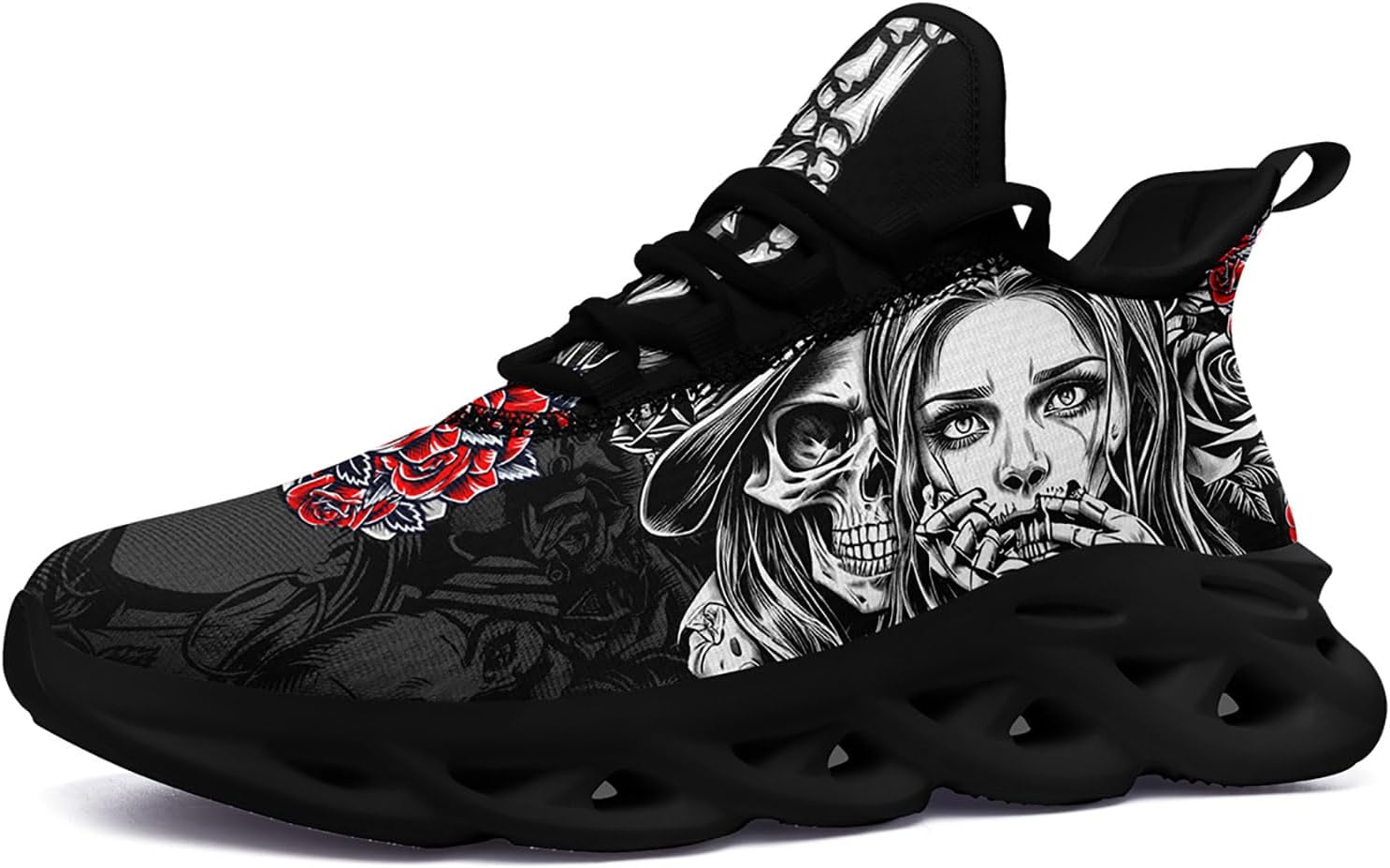 Women's Skull Running Shoes | Skull-Witch & Red Roses Fashion Sneakers