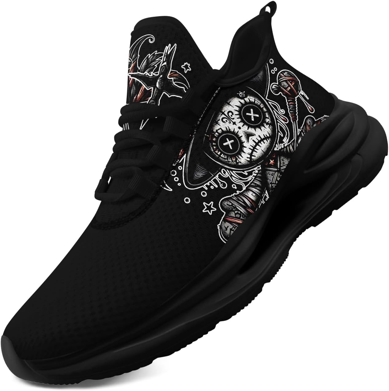 Men's Skull Gothic Eye Running Shoes Lightweight Breathable Sport Shoes for Women Cushion Slip On Walking Sneaker