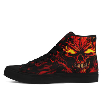 Custom High Top Flaming Demon Skull Sneakers | Fire Skull Art & Gothic Horror Shoes | FN024-24027047