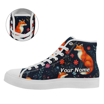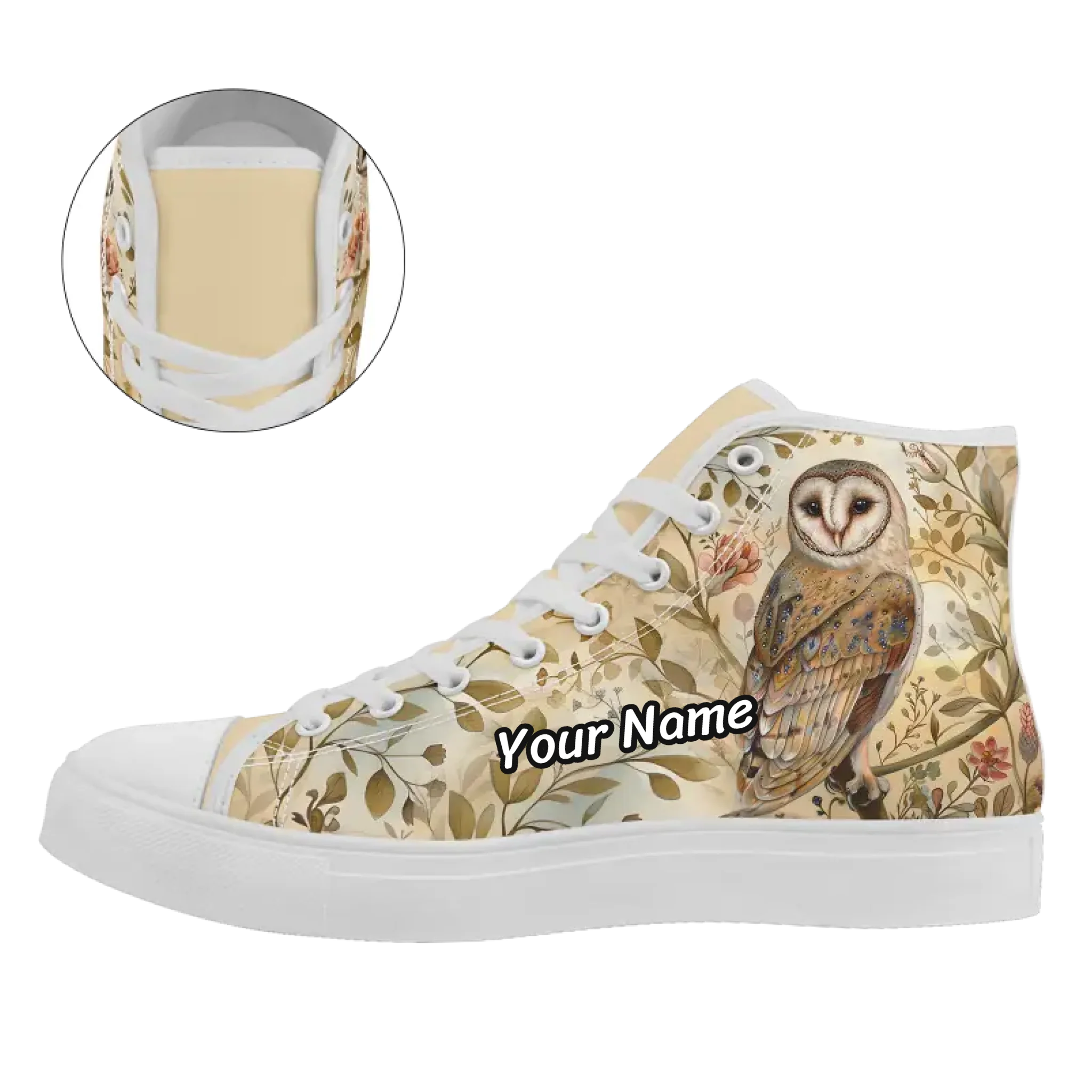 Elegant Barn Owl & Botanical High-Top Sneakers, Whimsical Forest & Floral Art Shoes FN024-25025150