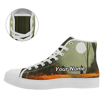 Howling Wolf & Full Moon High-Top Sneakers, Winter Forest Night Canvas Shoes FN024-25025130