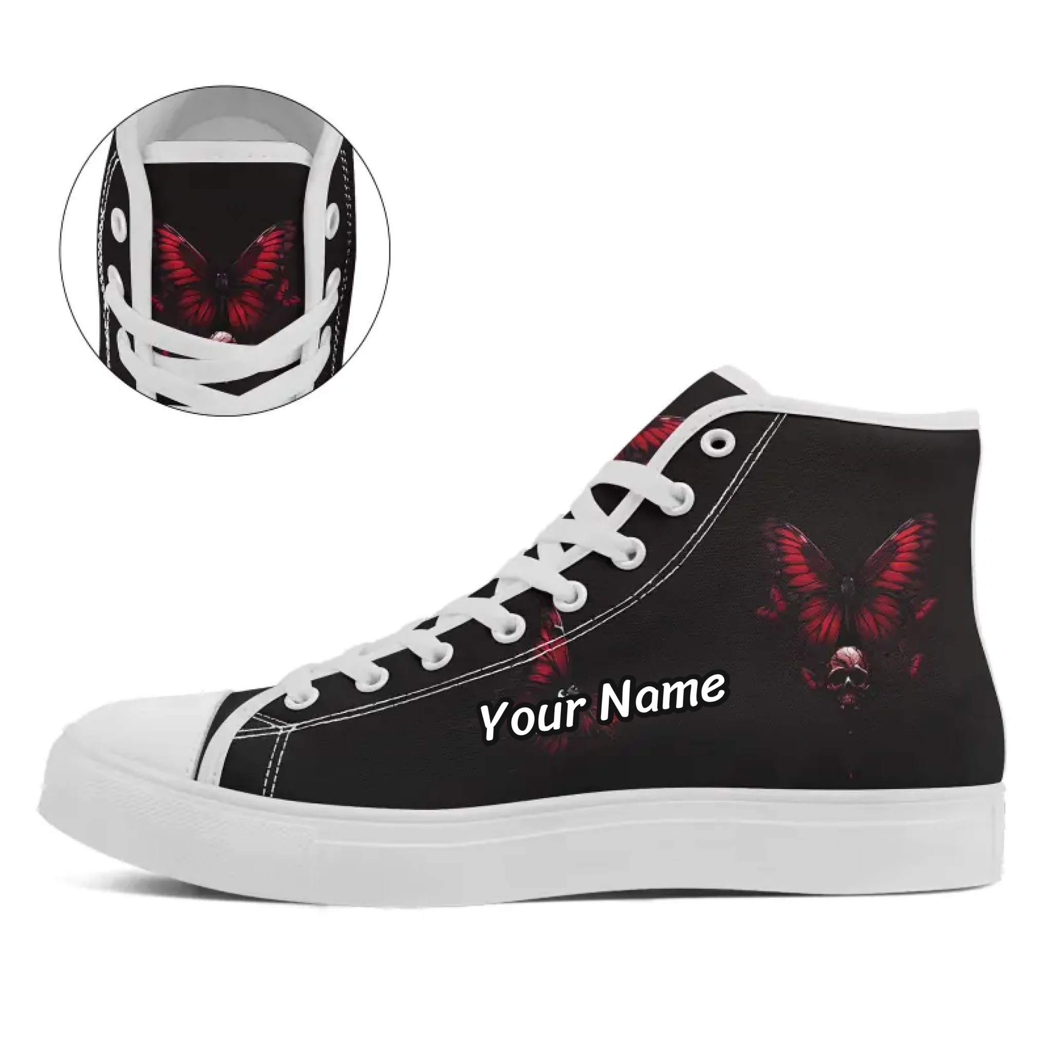Gothic Red Butterfly & Skull High-Top Sneakers, Macabre Beauty Dark Art Canvas Shoes FN024-25009063