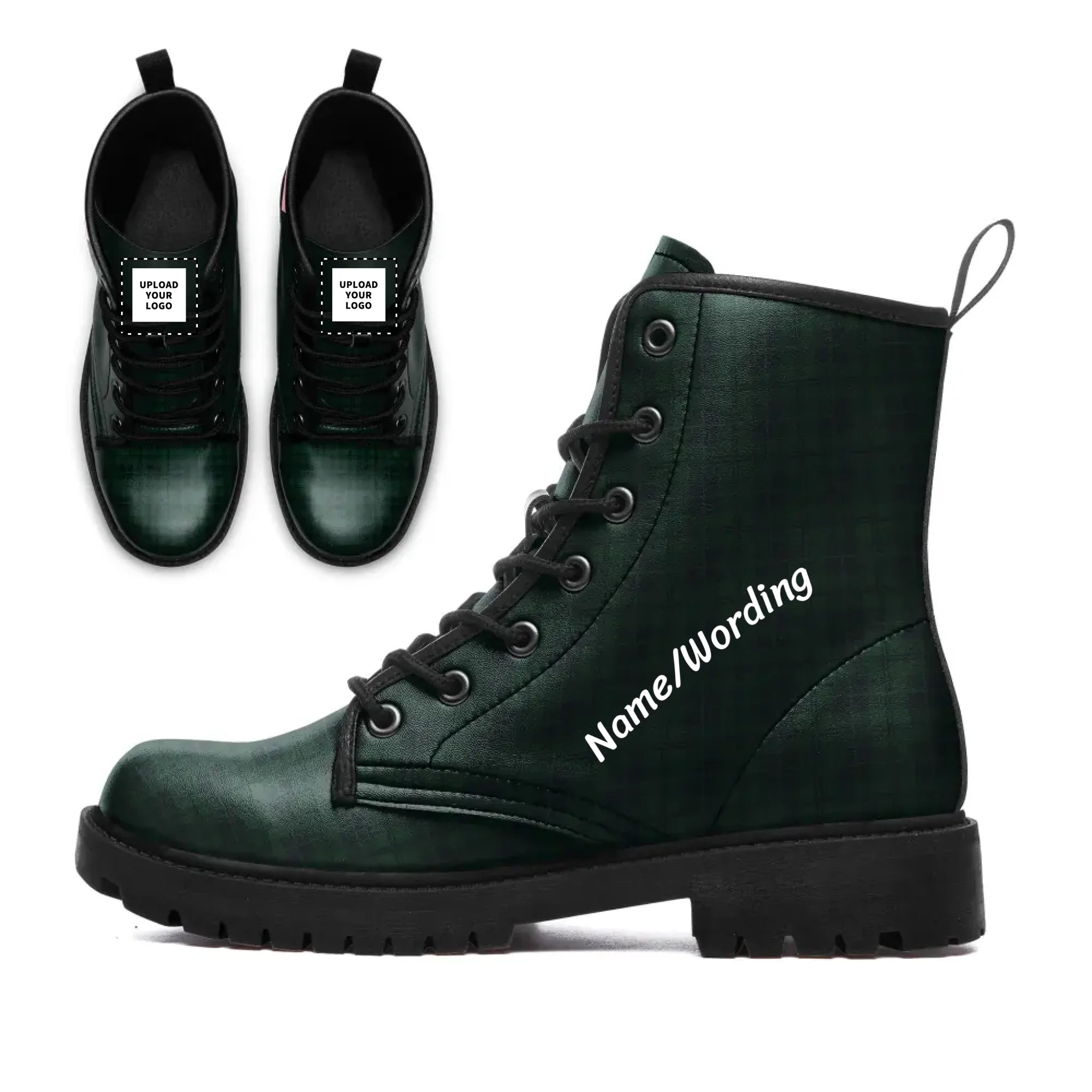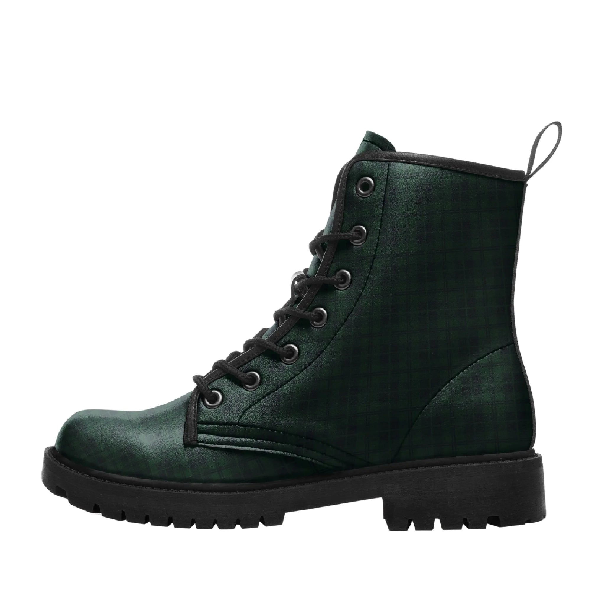 Dark Forest Green Plaid Combat Boots, Gothic Punk Tartan Style Vegan Leather Boots 058-6-25020195