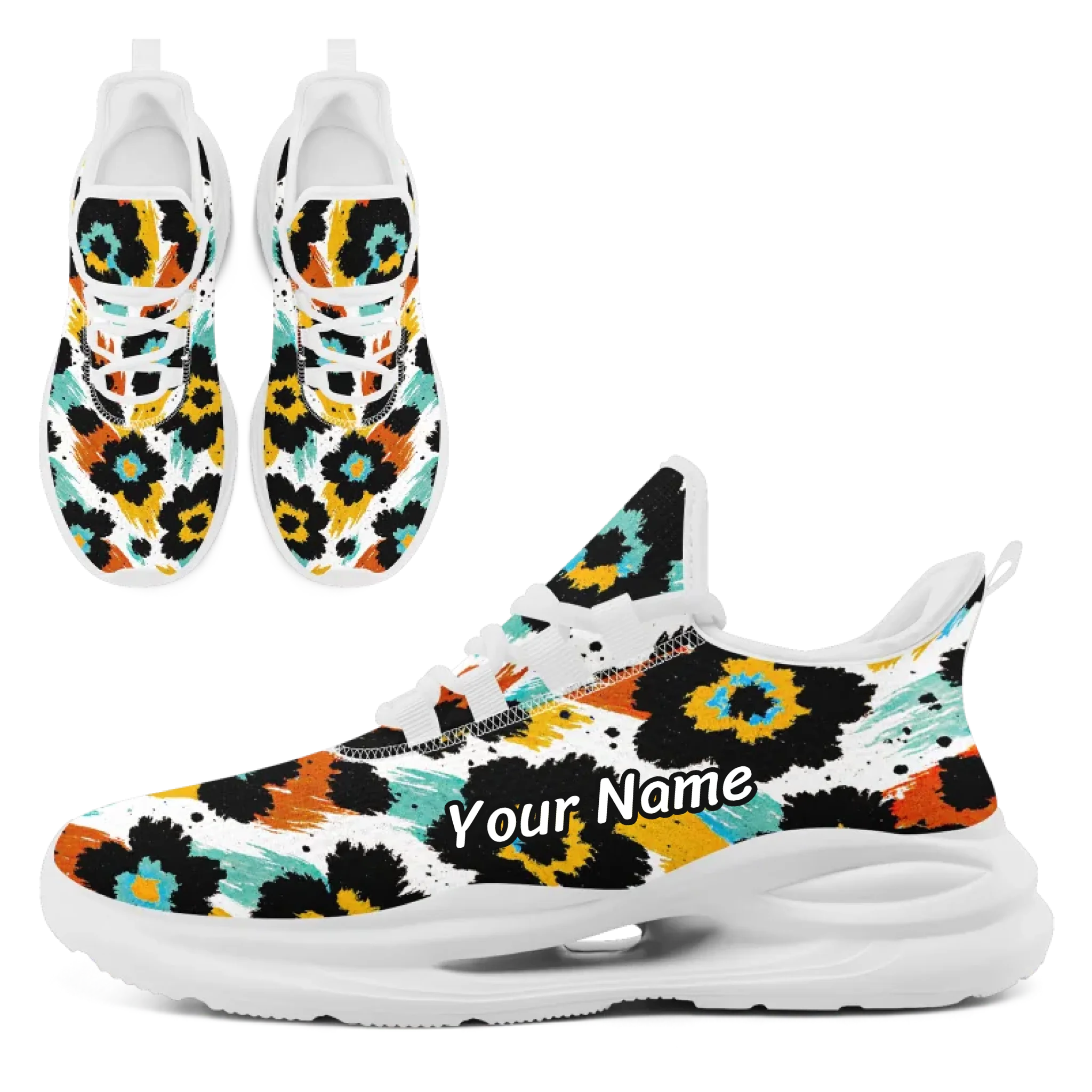 Abstract Leopard Print Athletic Sneakers, Colorful Artistic Brushstroke Fashion Trainers FN079-25027157