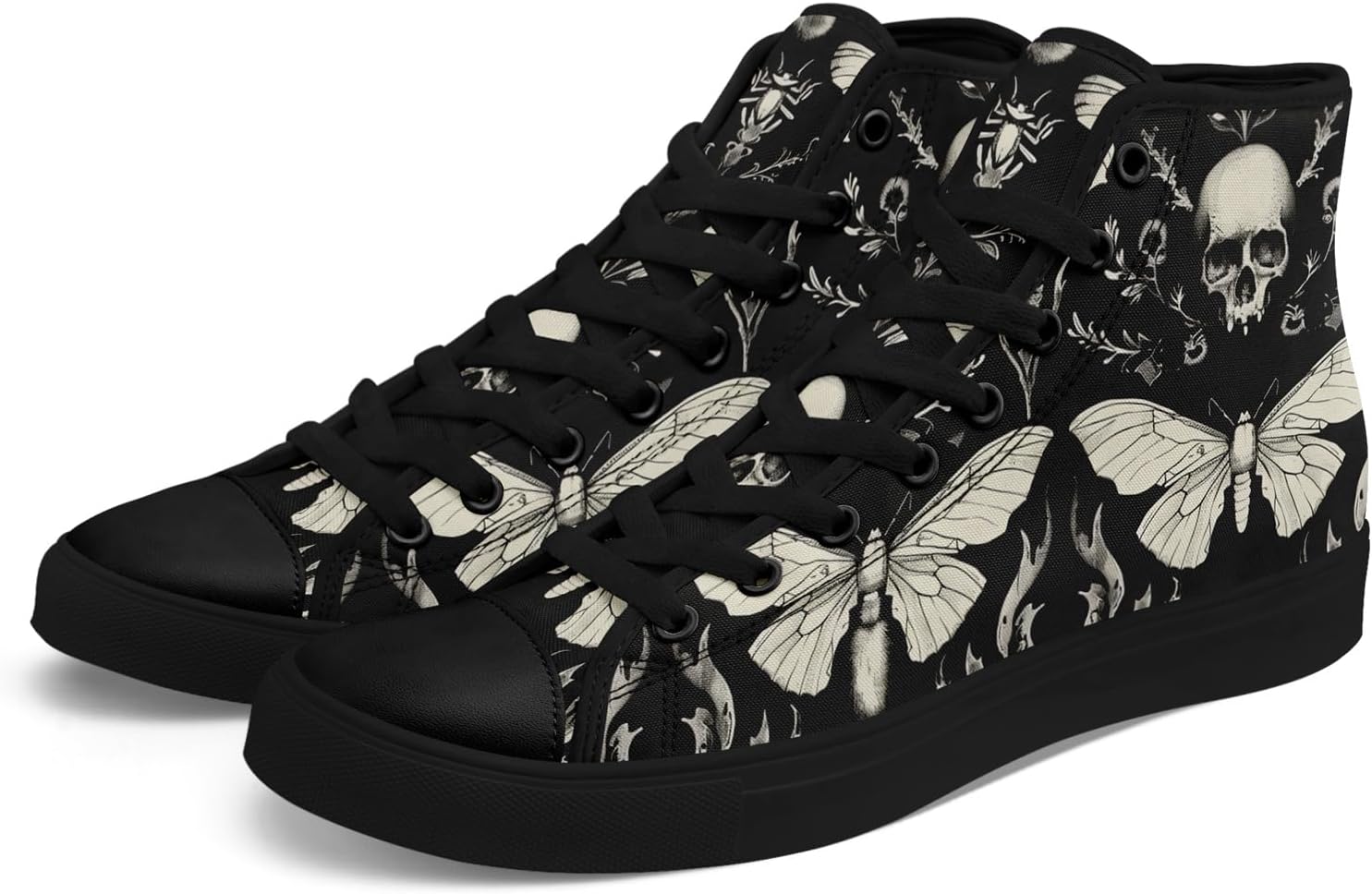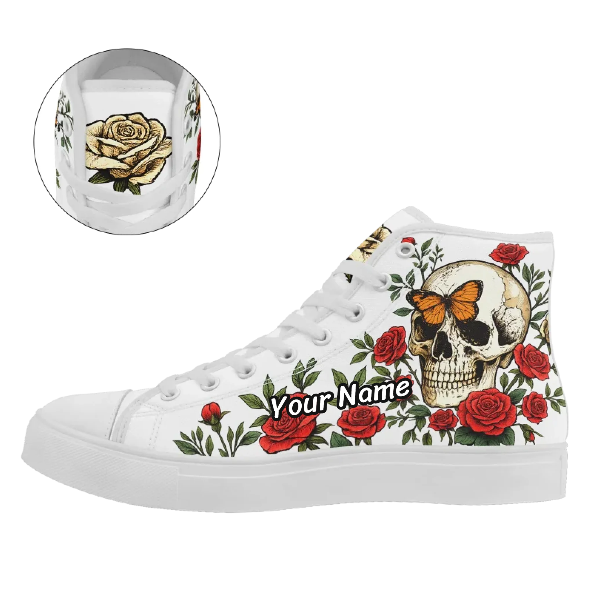 Skull High Top Canvas Sneakers for Men Women, Gothic Floral Print Streetwear Casual Fashion Skate Shoes