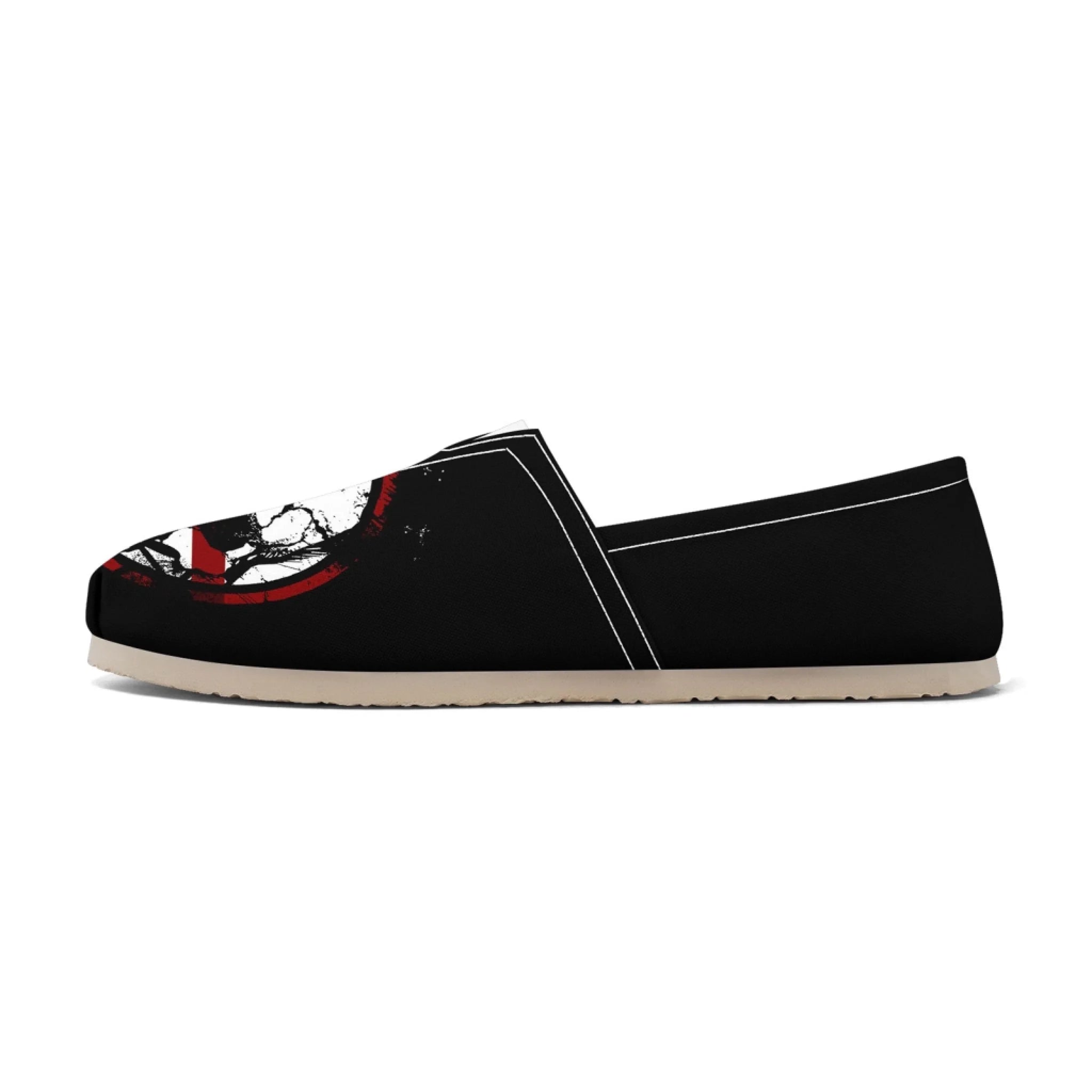 Gothic Skull Red Stripe Slip-On Loafers, Dark Macabre Casual Canvas Shoes FN053-25025151