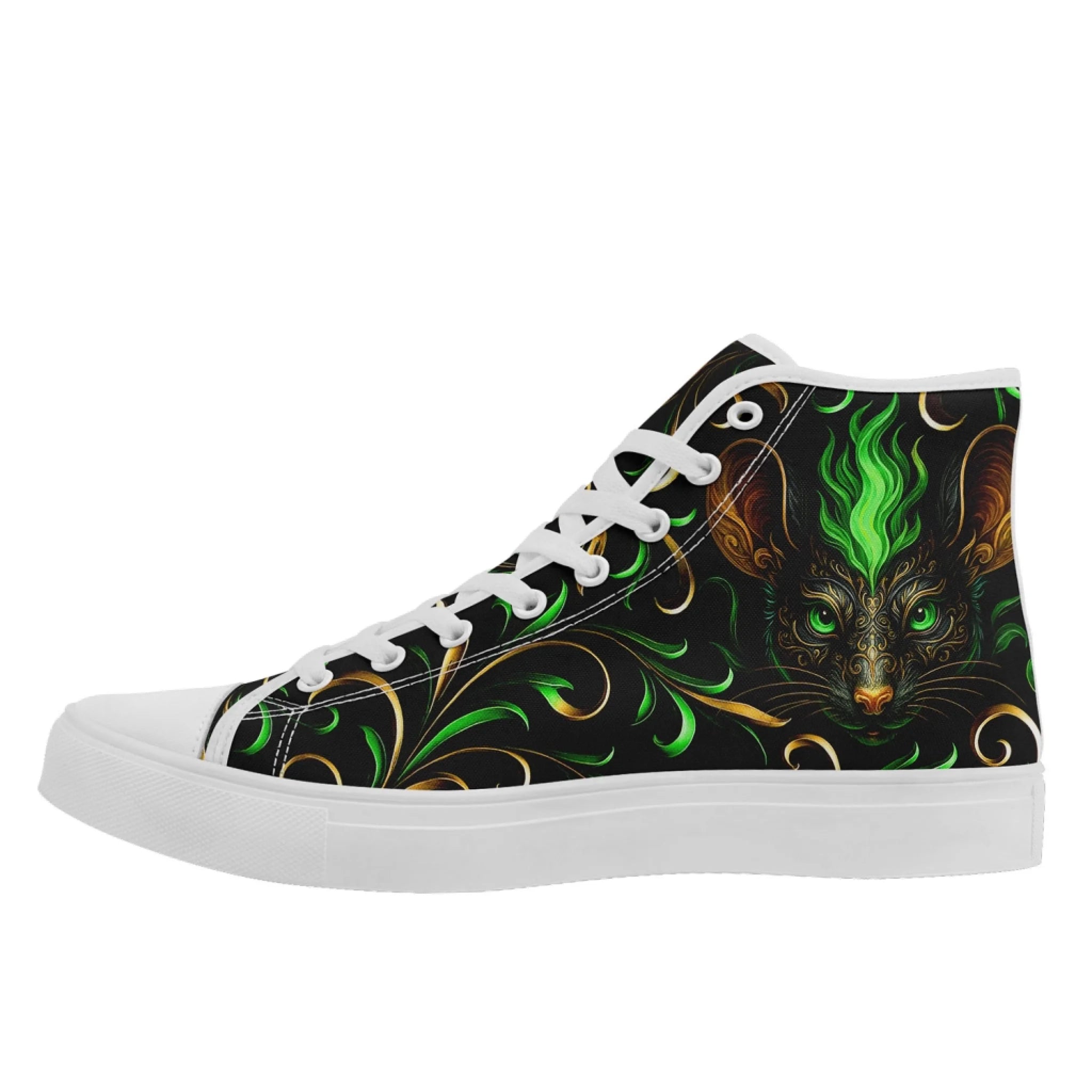 Mystical Green Flame Animal High-Top Sneaker Collection, Ornate Gothic Fantasy Art Shoes FN024-25027161