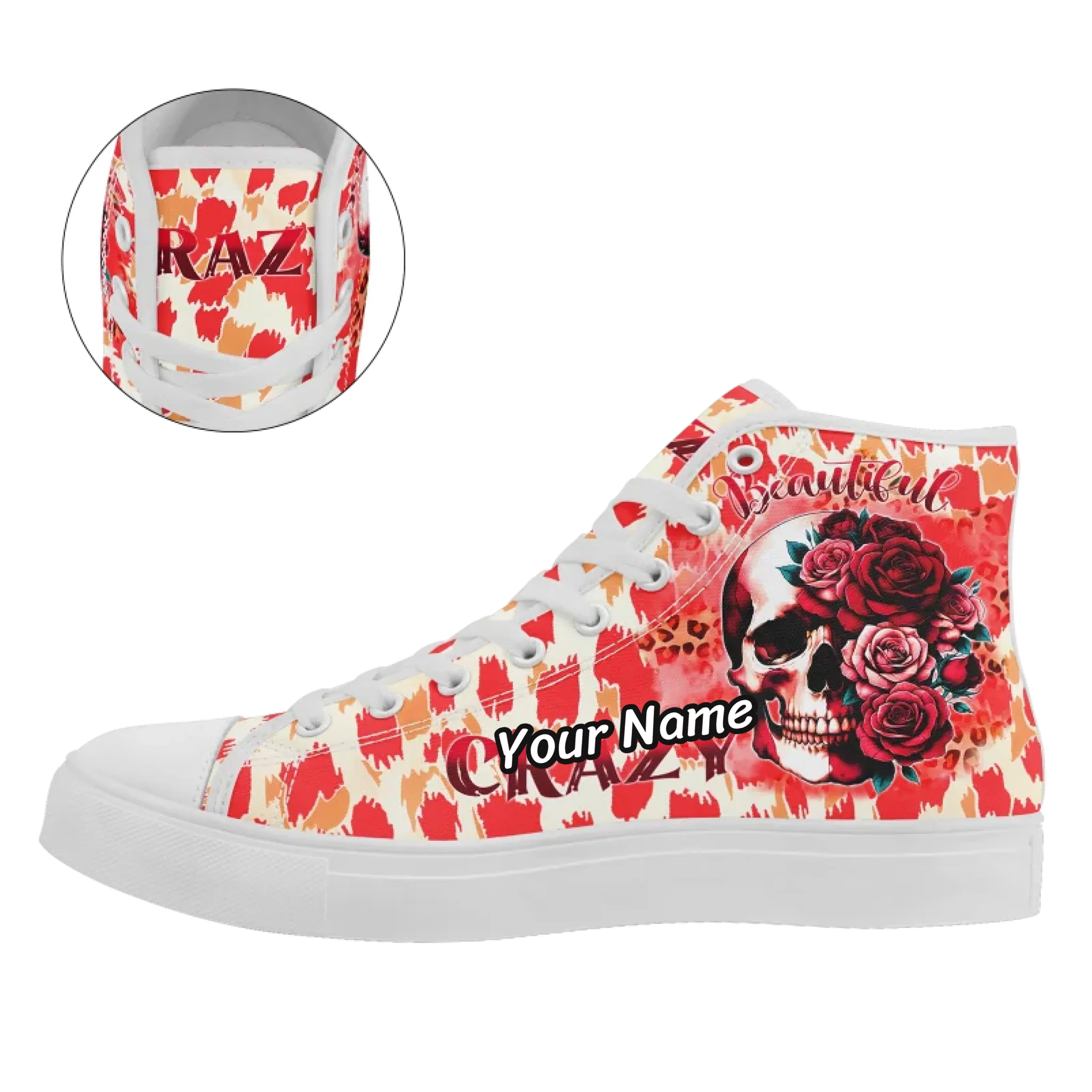 Crazy Beautiful Skull Rose & Leopard Print High-Top Sneakers, Edgy Goth Style Canvas Shoes FN024-25023198