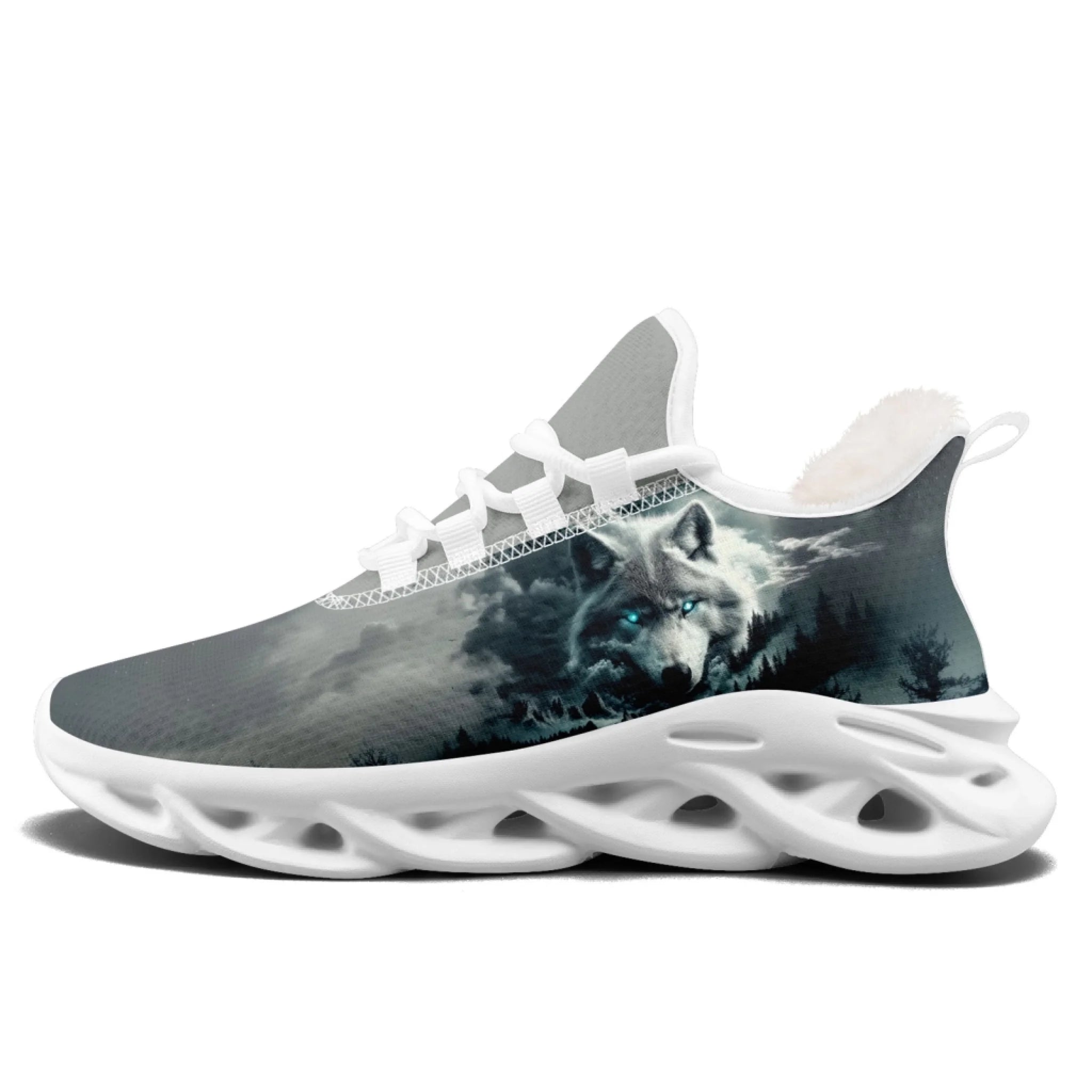 Mystical Wolf Spirit Athletic Sneakers, Misty Forest Graphic Trainers FN003A-25009076