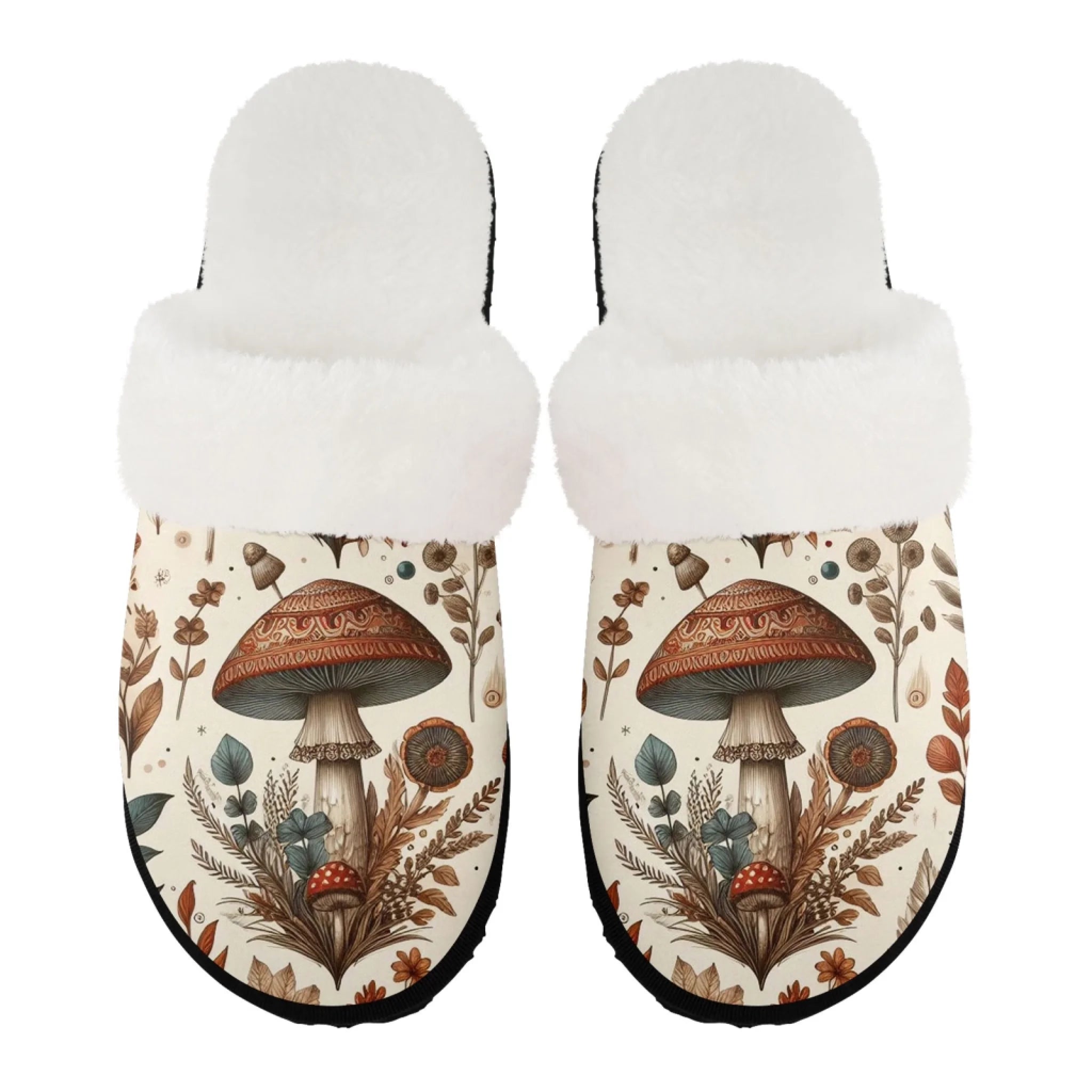 Cozy Botanical Print Plush Slippers, Nature Inspired House Shoes FN089-25025153