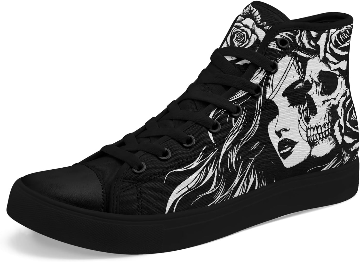 Rose Skull Sneakers | Gothic Floral Print Shoes | Alternative Fashion, Halloween Gift | FN003-25027044-1