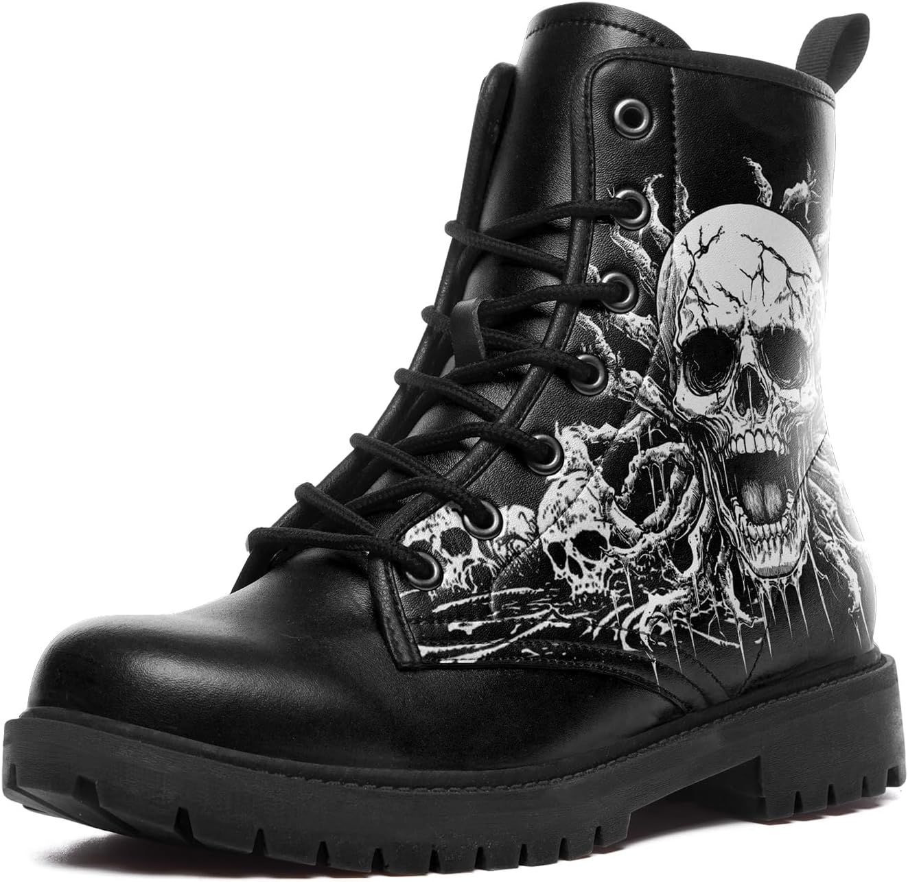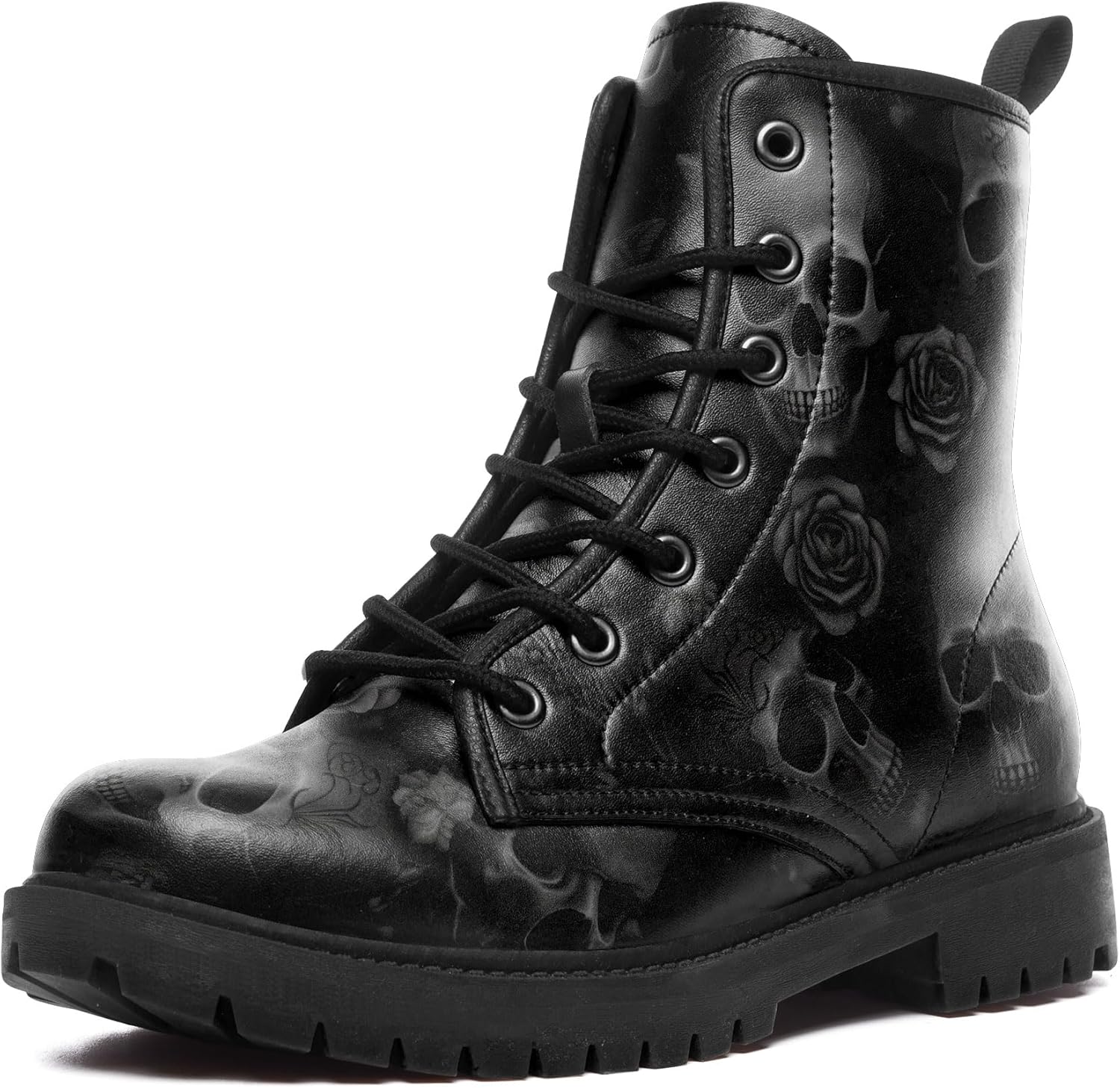 Skull Combat Boots for Men & Women Slip-Resistant Gothic Punk Style Cool Chunky Black Boots Vegan Leather Work Ankle Booties