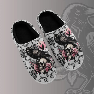 Elegant Rose Floral Plush Slipper Collection, Cozy Botanical Art House Shoes FN089-25009074