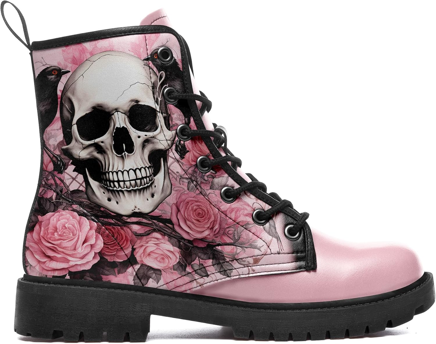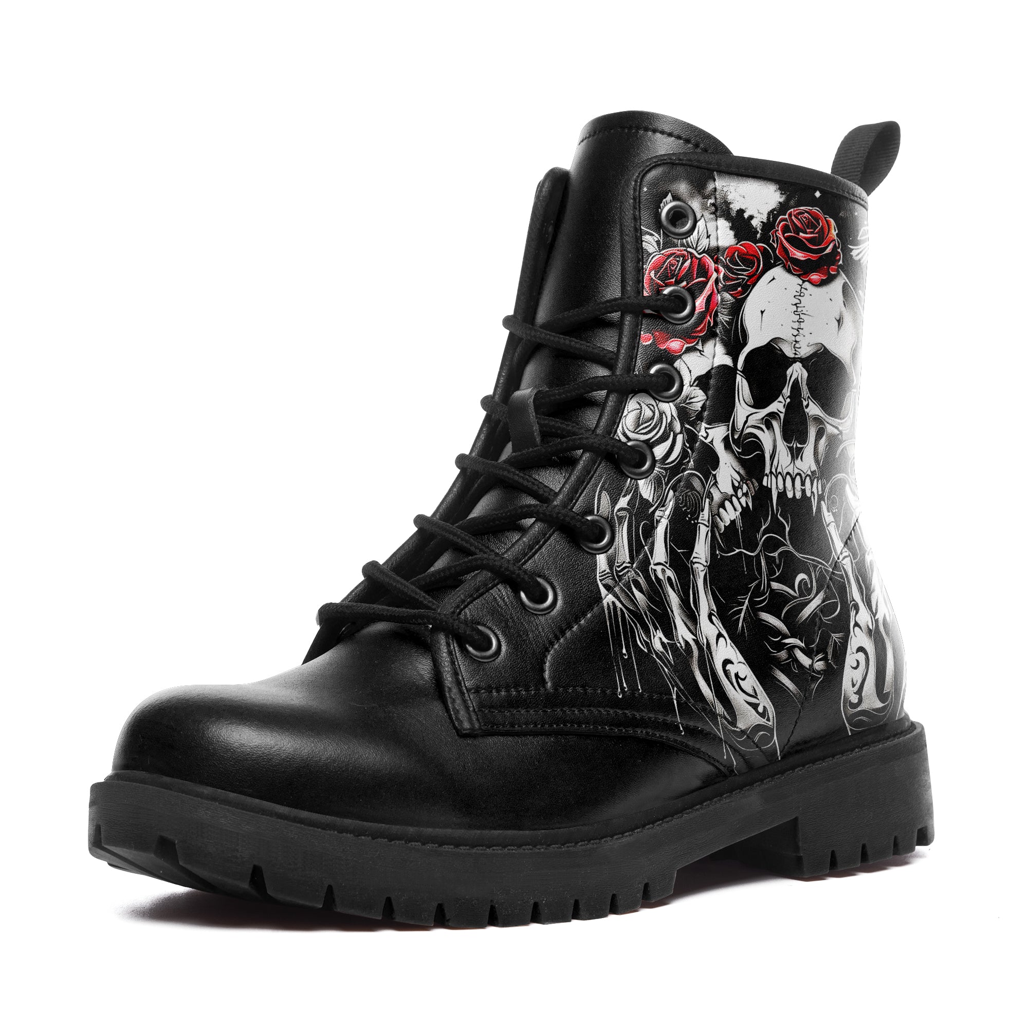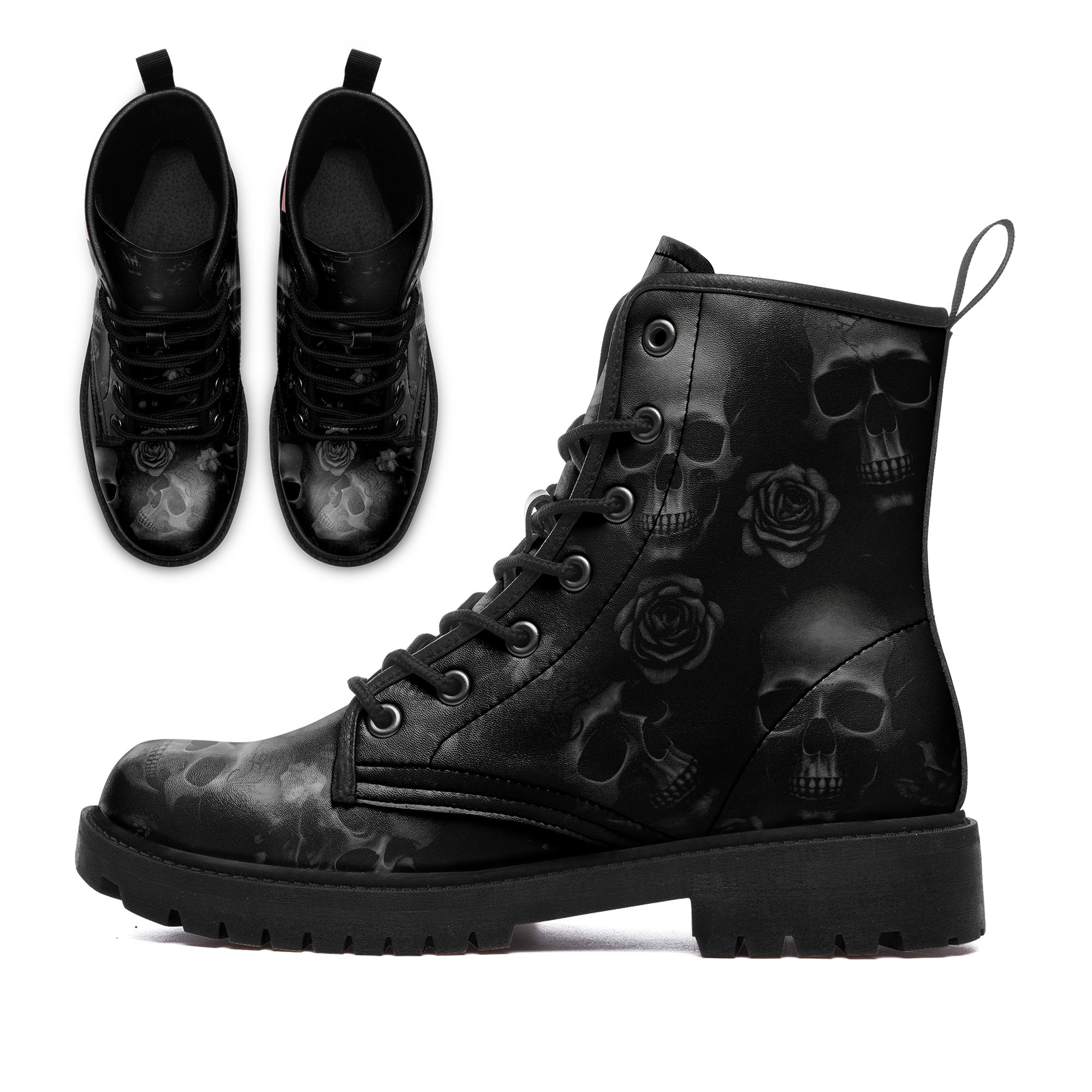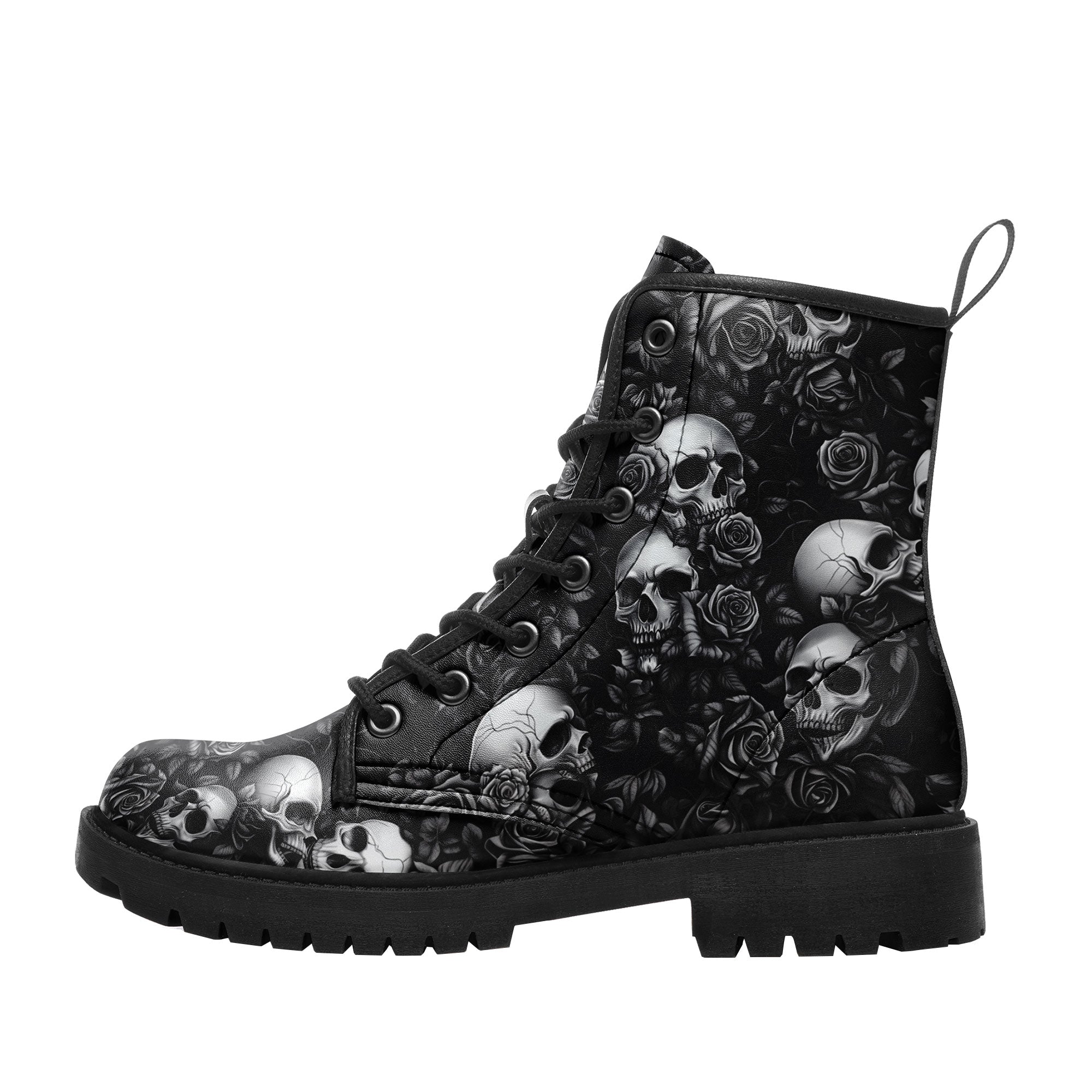Gothic Skull Combat Boots | Raven Rose Skull Black Boots | Halloween Gift For Goth fans | BOOTS-25027041-10