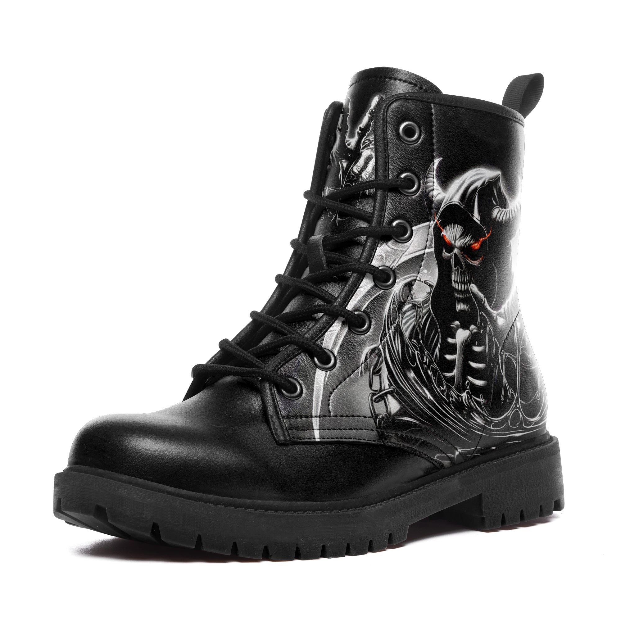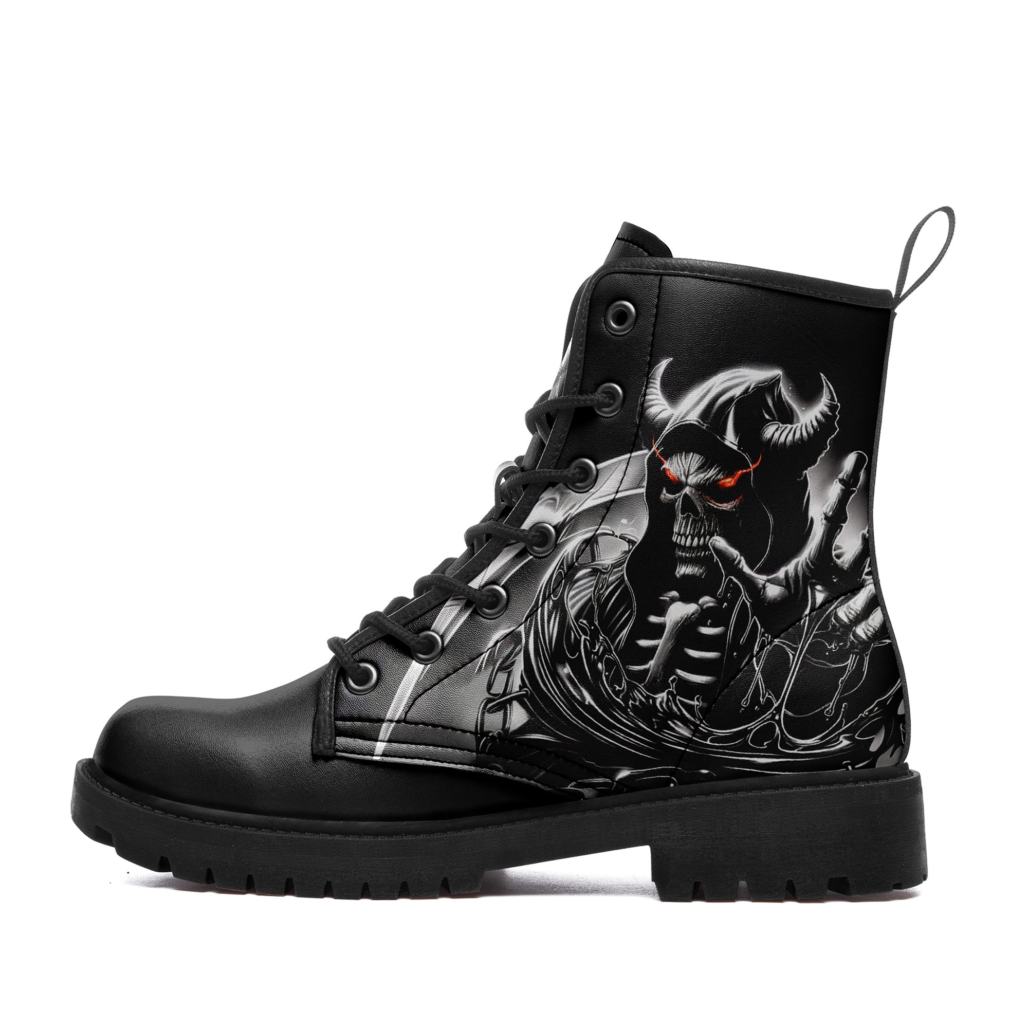 Horned Demon Reaper Scythe Combat Boots - Heavy Metal Fantasy Art Shoes BOOTS-25027041-7