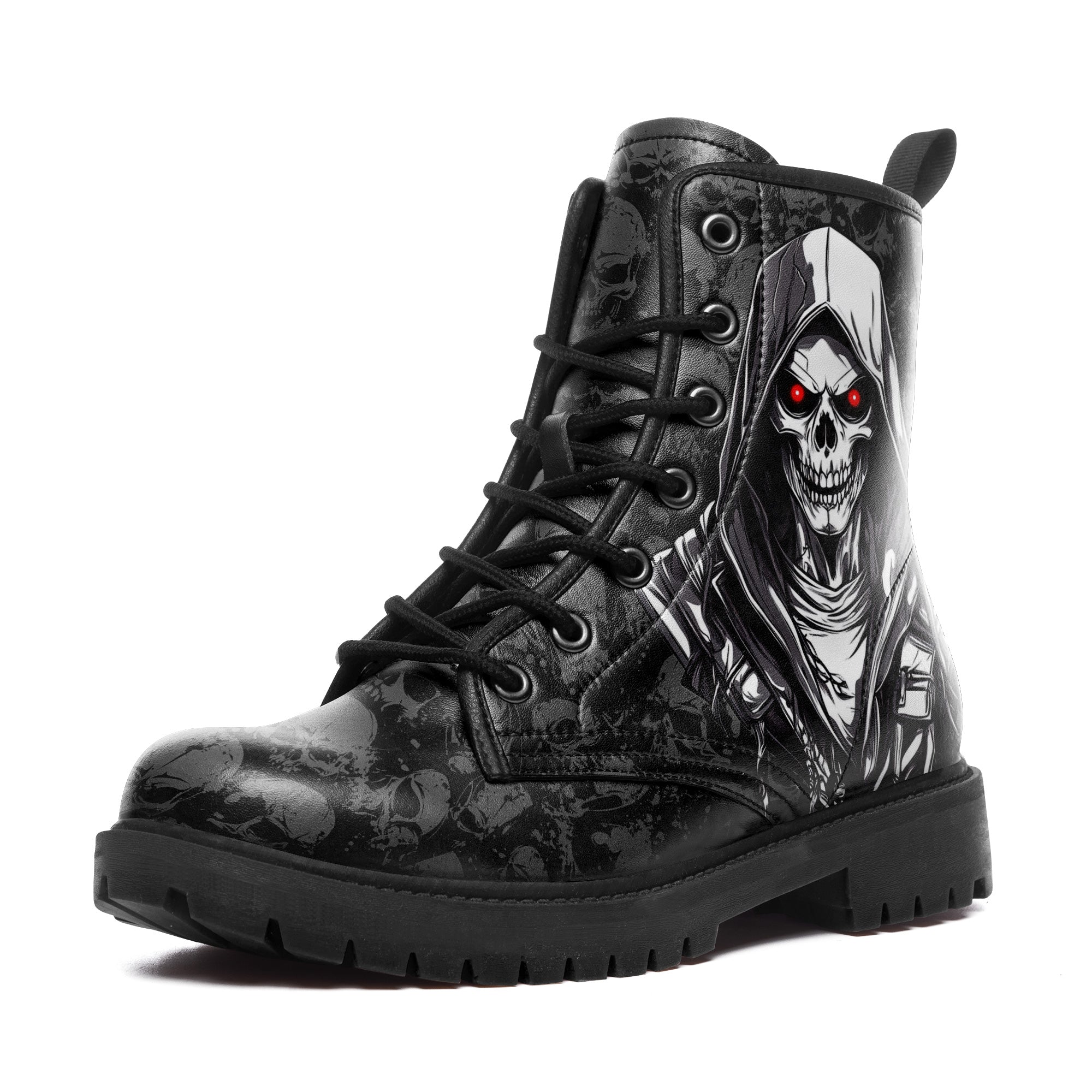 Hooded Skeleton Assassin Combat Boots - Glowing Red Eyes Reaper Shoes BOOTS-240270012