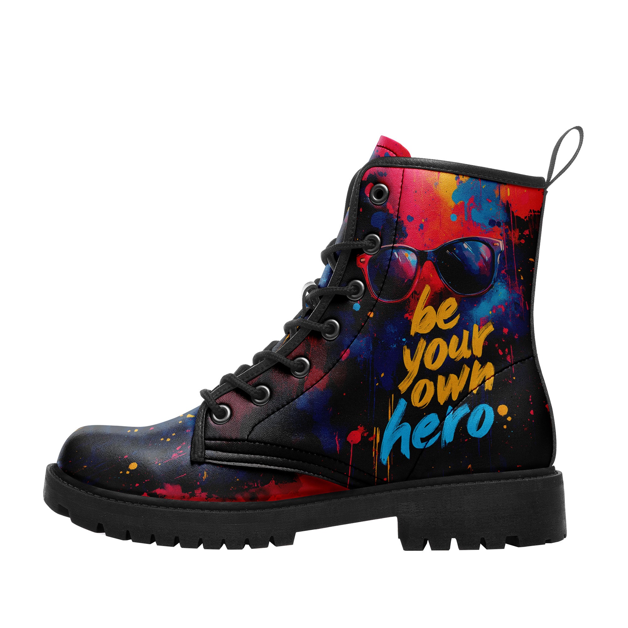 Be Your Own Hero Paint Splatter Combat Boots - Motivational Quote Shoes 058-6-25009075-8