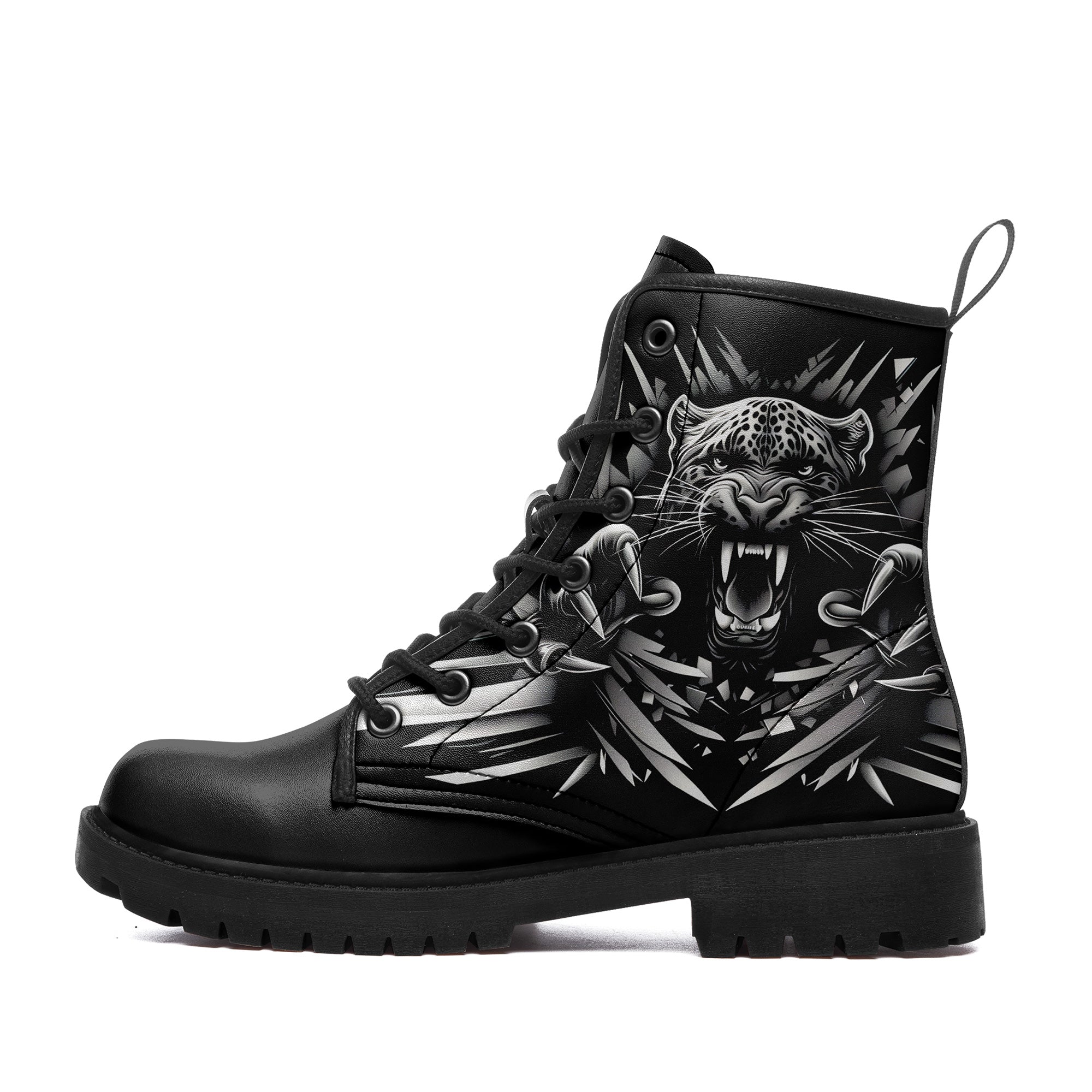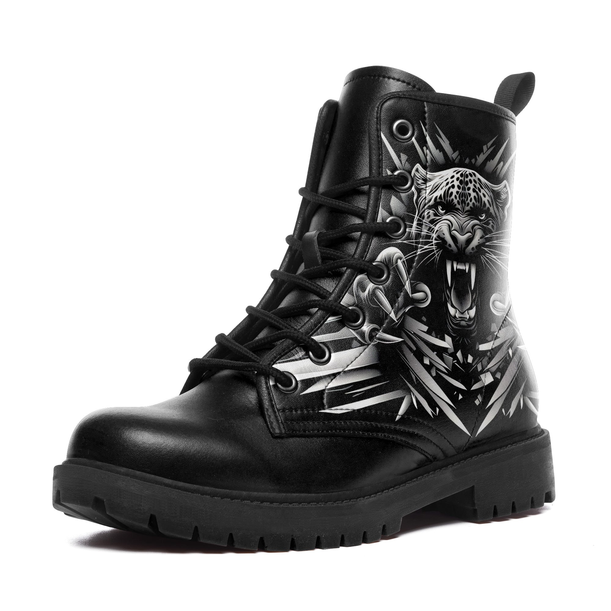 Roaring Leopard & Claw Marks Combat Boots - Monochrome Animal Print Shoes BOOTS-25027041-5
