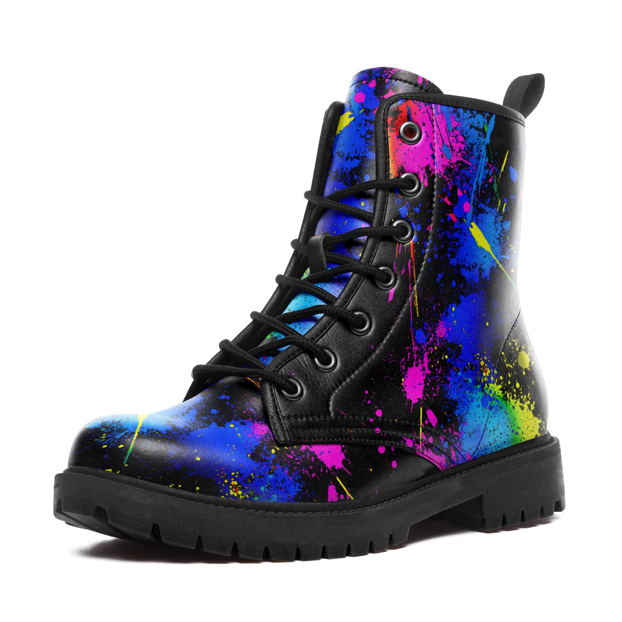 Neon Paint Splatter Art Combat Boots - Colorful Abstract Drip Shoes 058-6-25009075-9