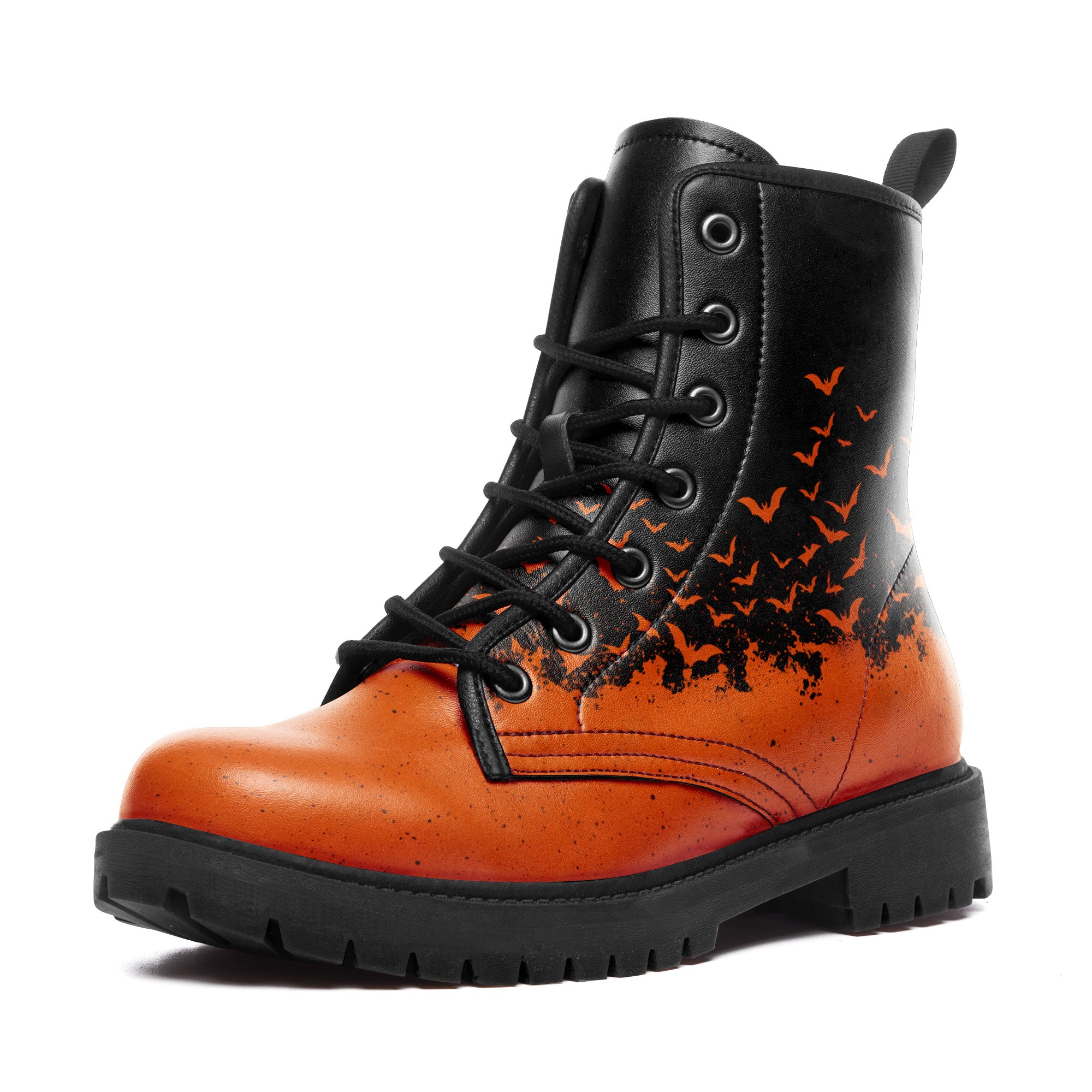 Sunset Flight Bat Graphic Leather Boots - Autumn Halloween Aesthetic 058-6-25009051-1