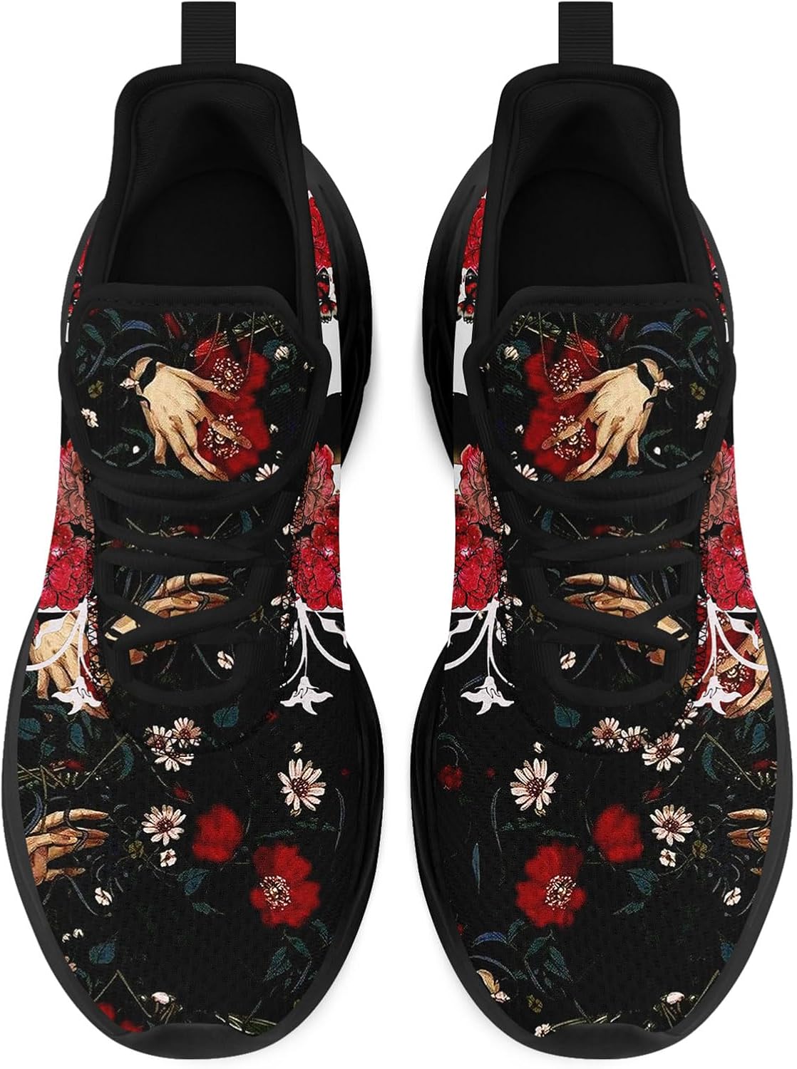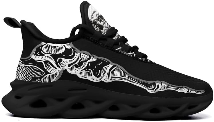 Men's Gothic Skelton Hand Shoes | Punk Rock Breathable Cushion Sports Walking Skull Sneakers Gym Jogging Tennis Shoes