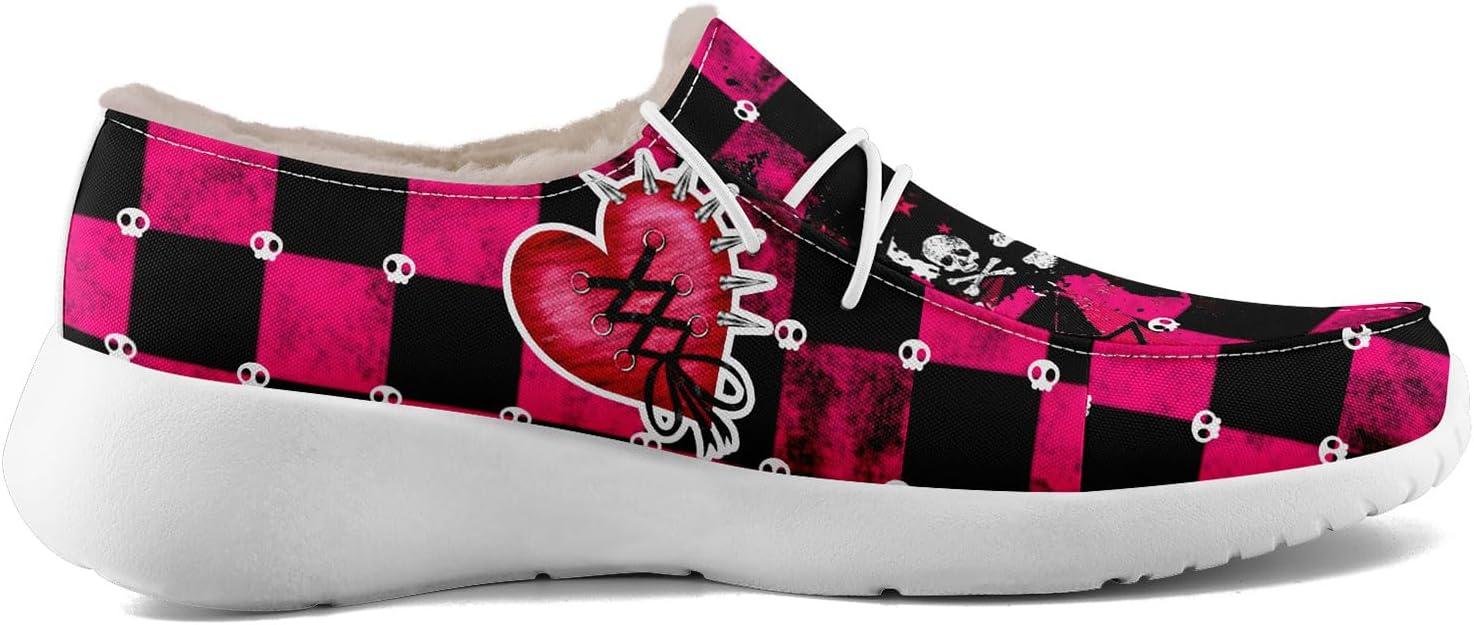 Men's Gothic Casual Loafers, Skull Canvas Fur Lined Slip On Shoes Moccasins Confortable Lace Up Warm Winter Shoes for Women