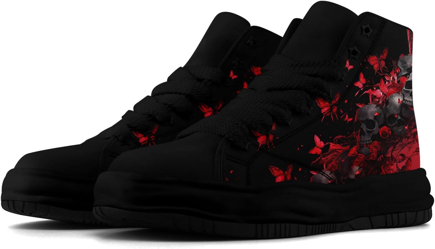 Mens High Top Sneakers Lace-Up Gothic Designed Casual Steet Canvas Shoes for Women Red and Black Skull Shoes