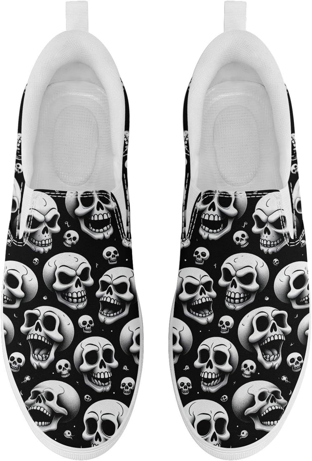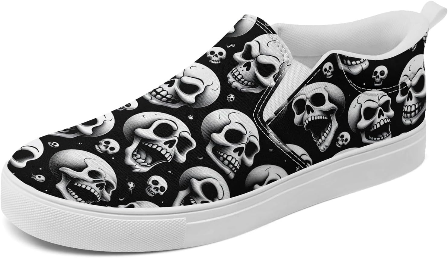 Men's Slip-On Canvas Shoes Gothic Skull Print Casual Lightweight Loafers Comfortable Walking Sneaker for Women
