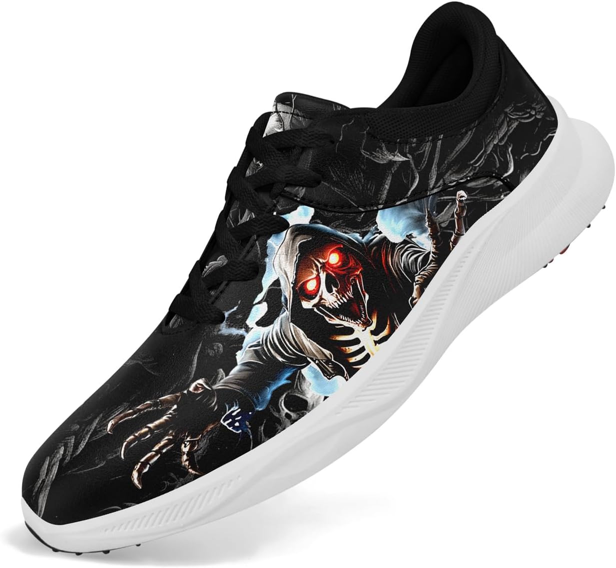 Mens Spikeless Skull Golf Shoes with Auto Vent Sole,Waterproof Slip-Resistant Gothic Punk Rock Style Fashion Golf Shoes