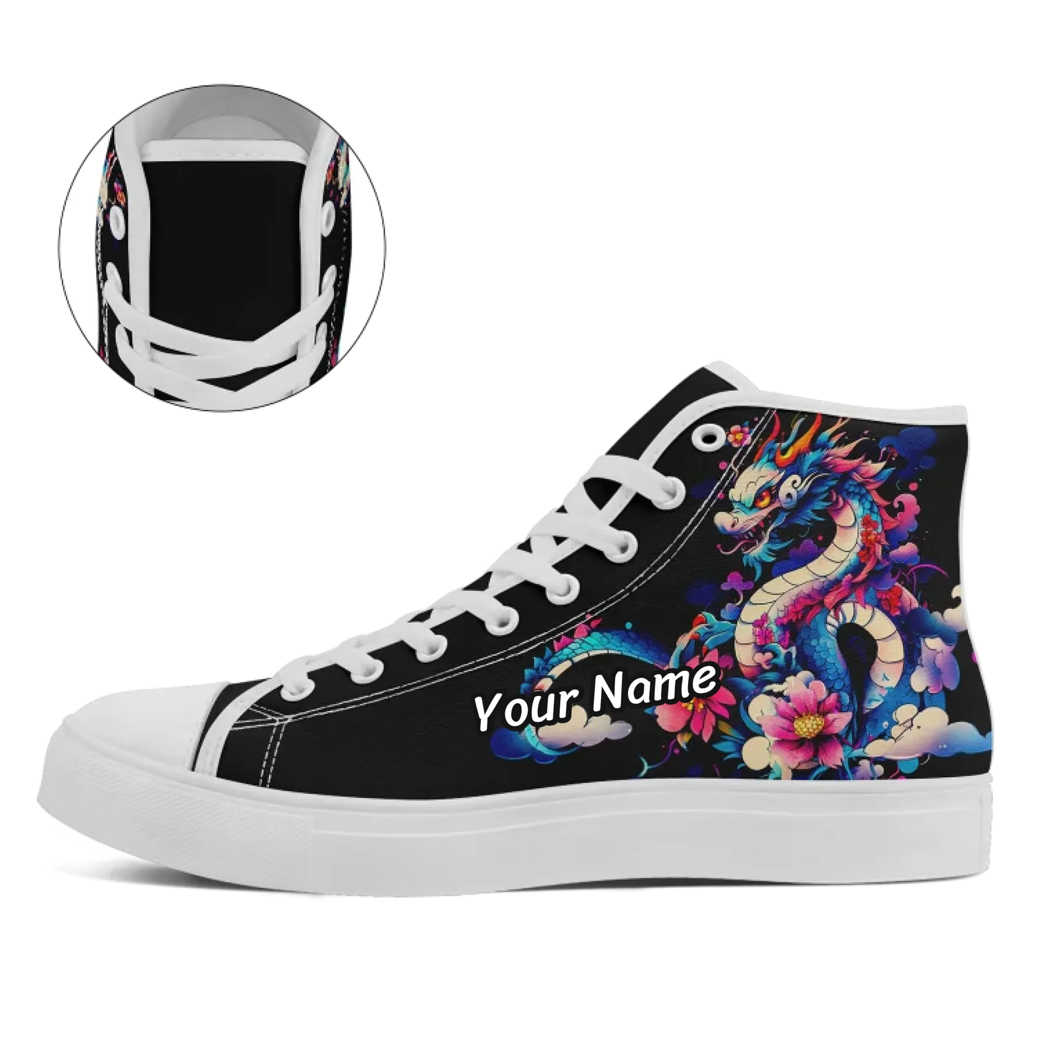 Vibrant Psychedelic Dragon High-Top Sneakers, Mythical Asian Art Print Goth Punk Shoes FN024-25027149