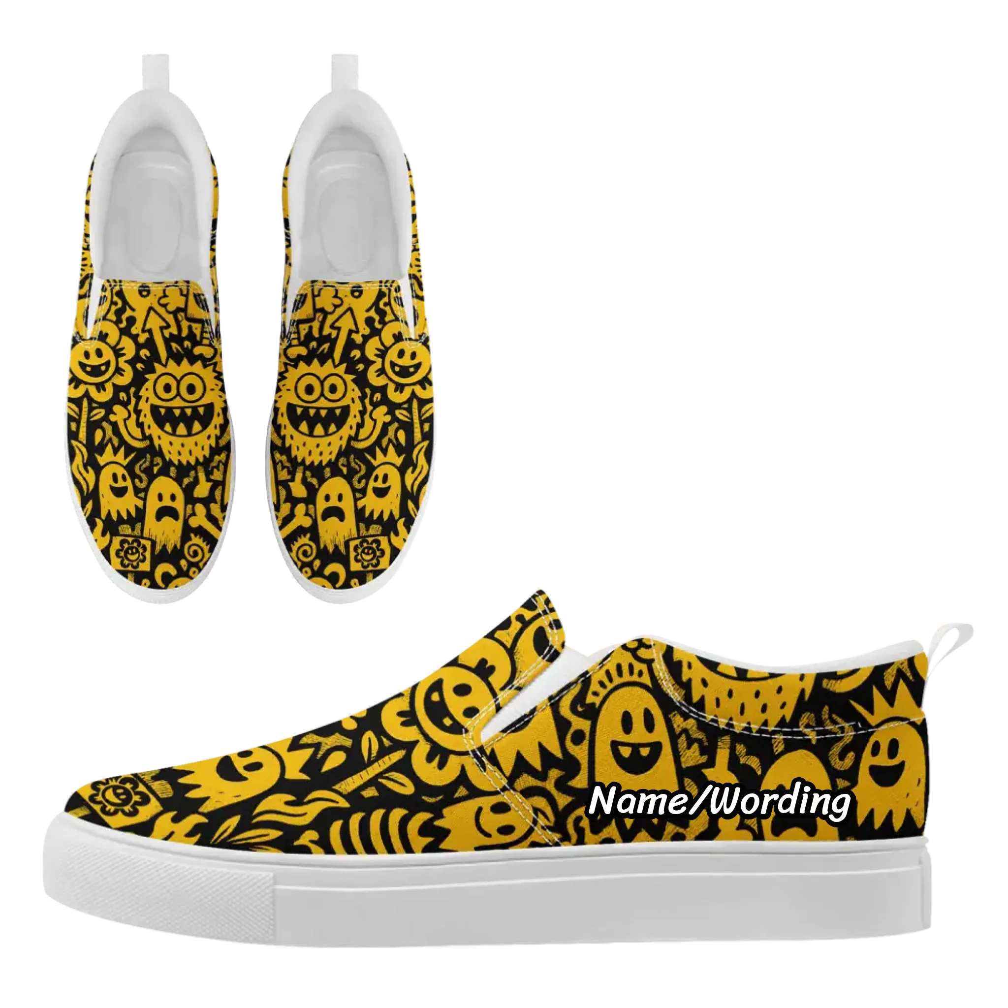 Funky Monster Doodle Street Art Slip-On Shoes, Yellow & Black Abstract Cartoon Loafers FN071-25027151