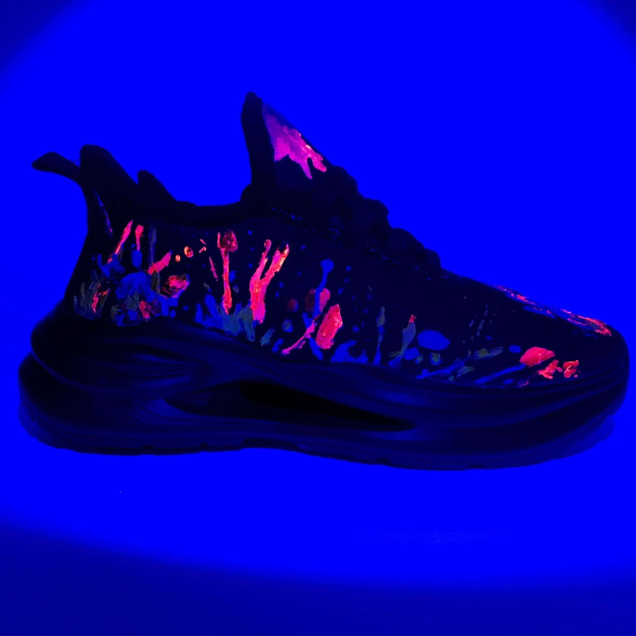 Fluorescent Neon Paint Splatter Rave Sneakers, Glow-in-the-Dark Blacklight Reactive Party Shoes FN079-25021065