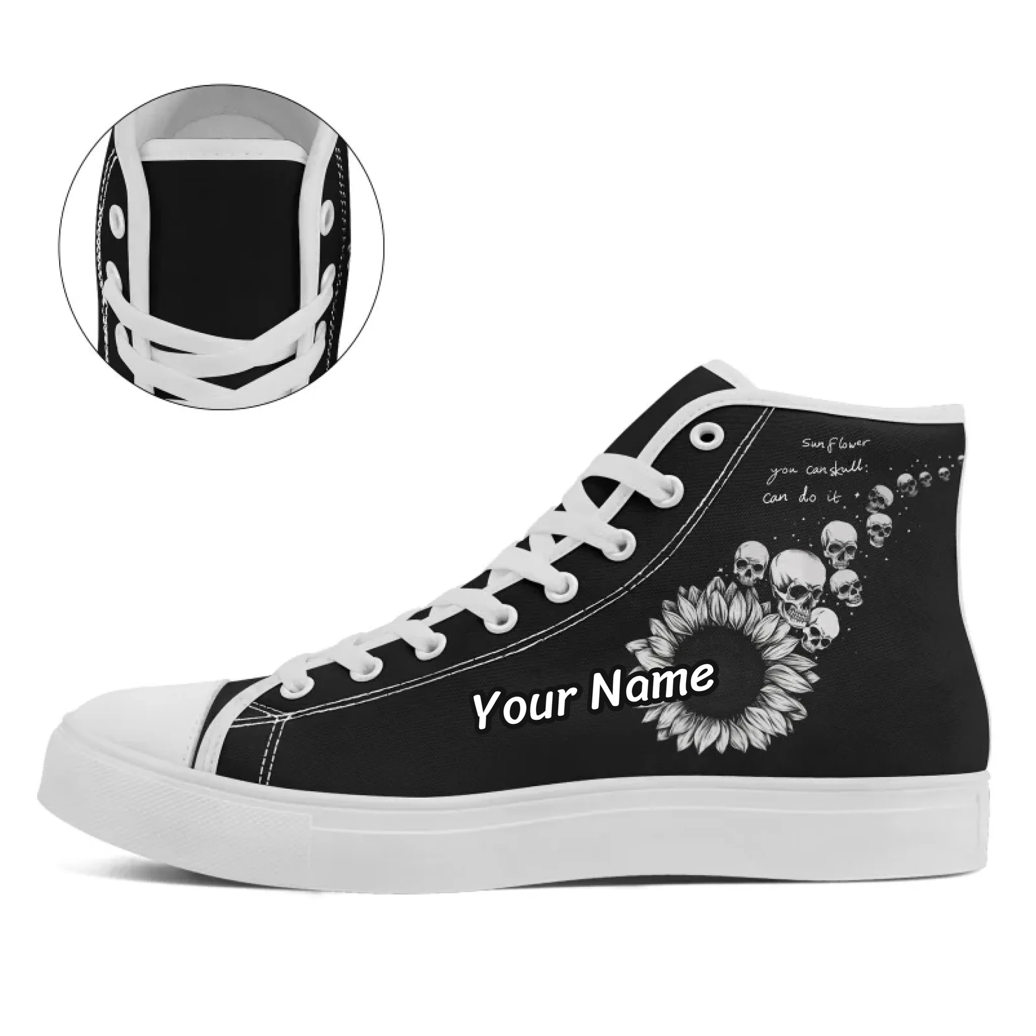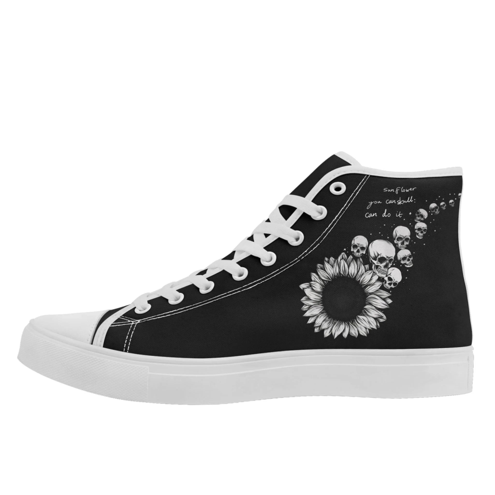 Gothic Sunflower Skull High-Top Sneakers, Macabre Art Inspirational Quote FN024-25009068