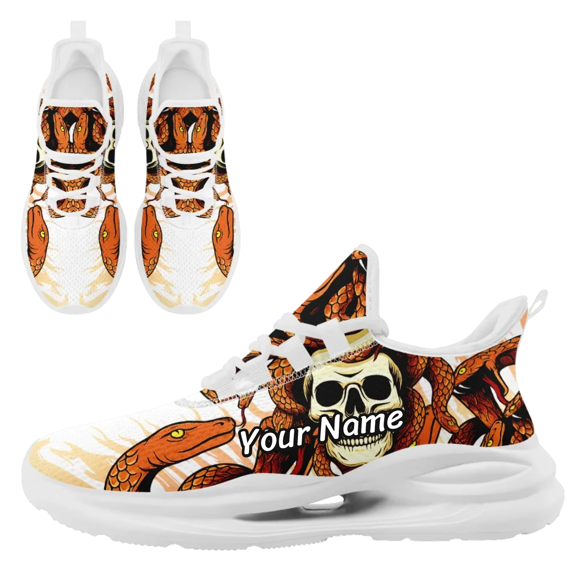Gothic Viper Skull Athletic Sneakers, Coiling Snake & Skull Print Streetwear Trainers FN079-25023195