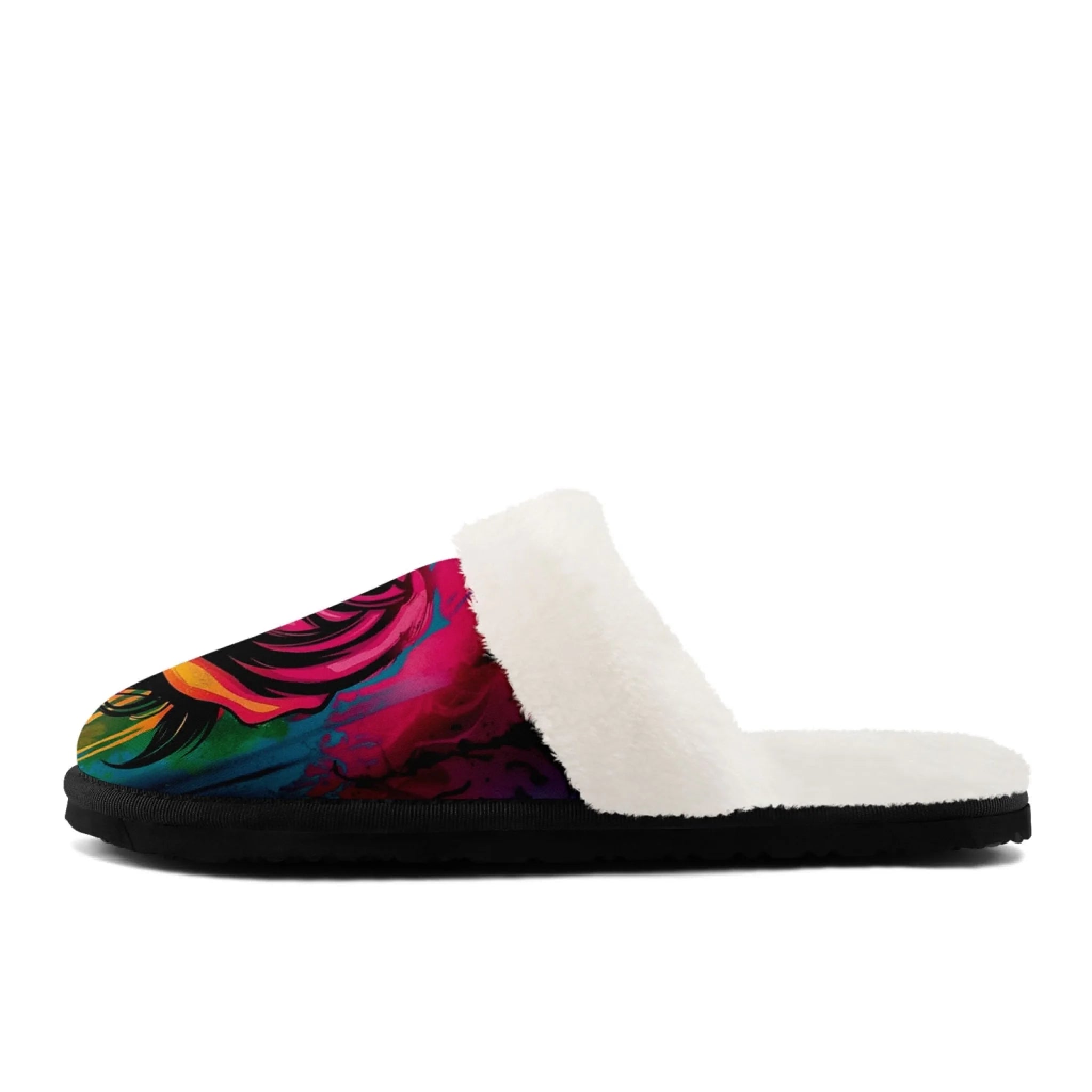 Elegant Rose Floral Plush Slipper Collection, Cozy Botanical Art House Shoes FN089-25009074