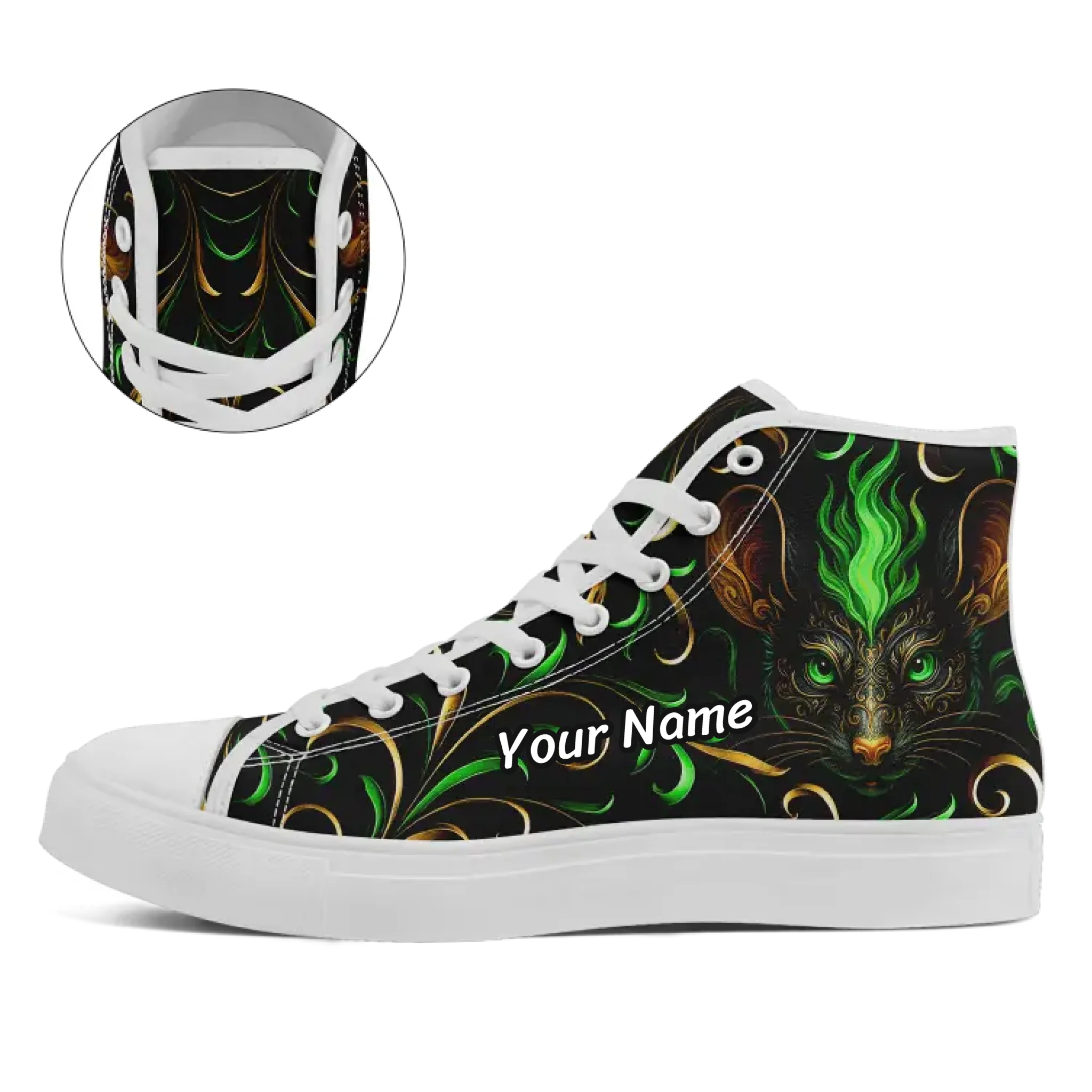 Mystical Green Flame Animal High-Top Sneaker Collection, Ornate Gothic Fantasy Art Shoes FN024-25027161