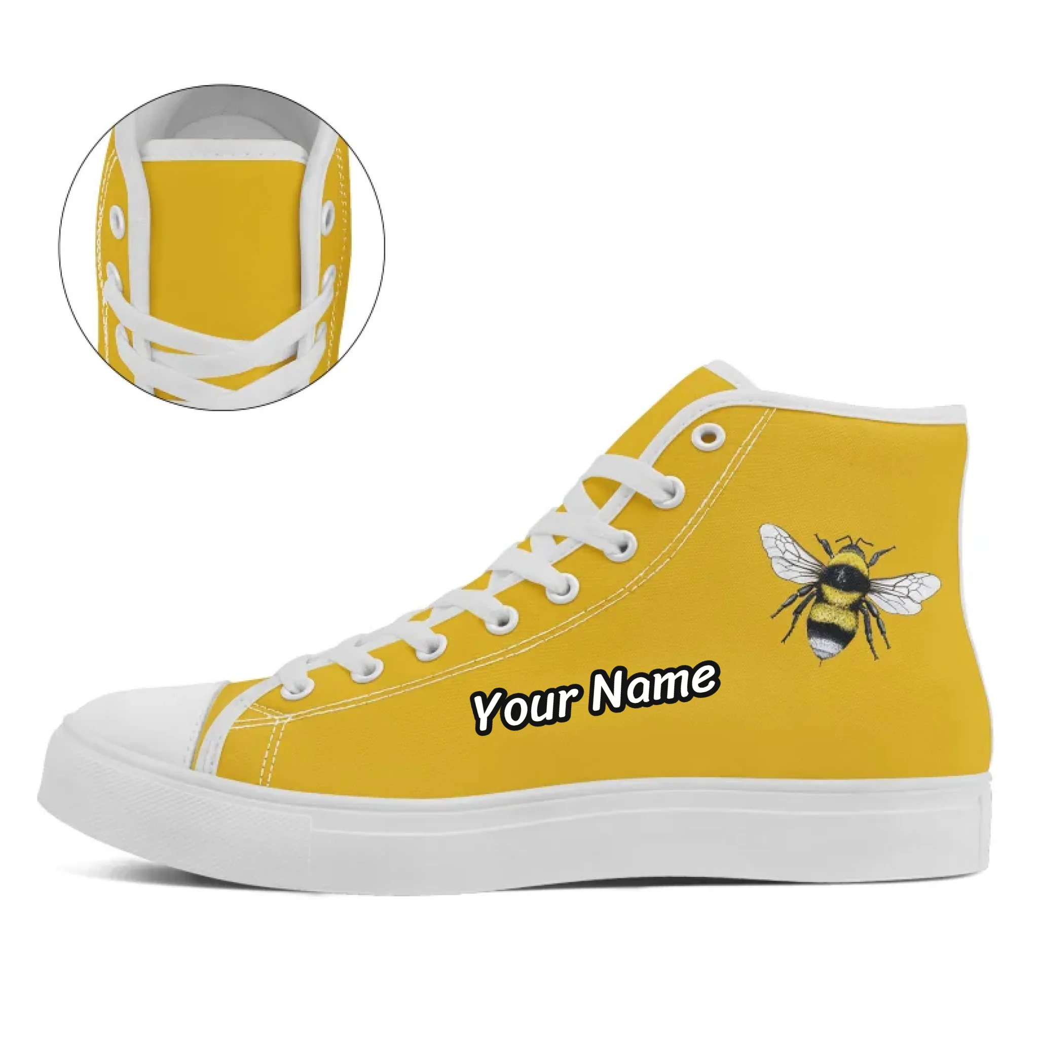 Minimalist Bumblebee High-Top Sneakers, Yellow Nature Art Canvas Shoes FN024-25020203