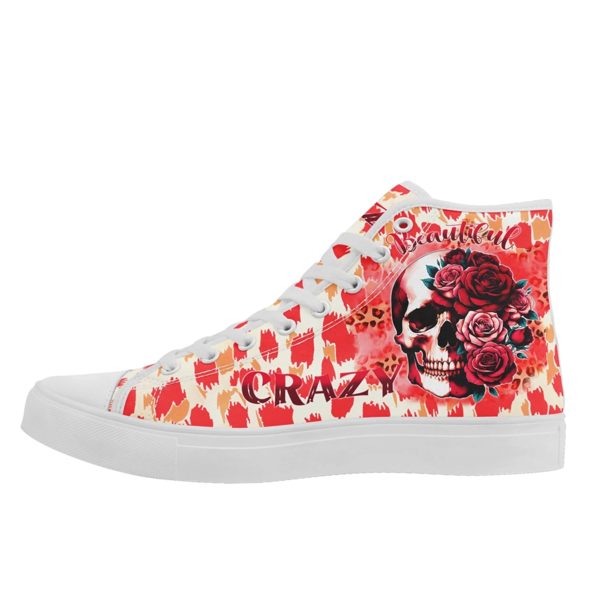 Crazy Beautiful Skull Rose & Leopard Print High-Top Sneakers, Edgy Goth Style Canvas Shoes FN024-25023198