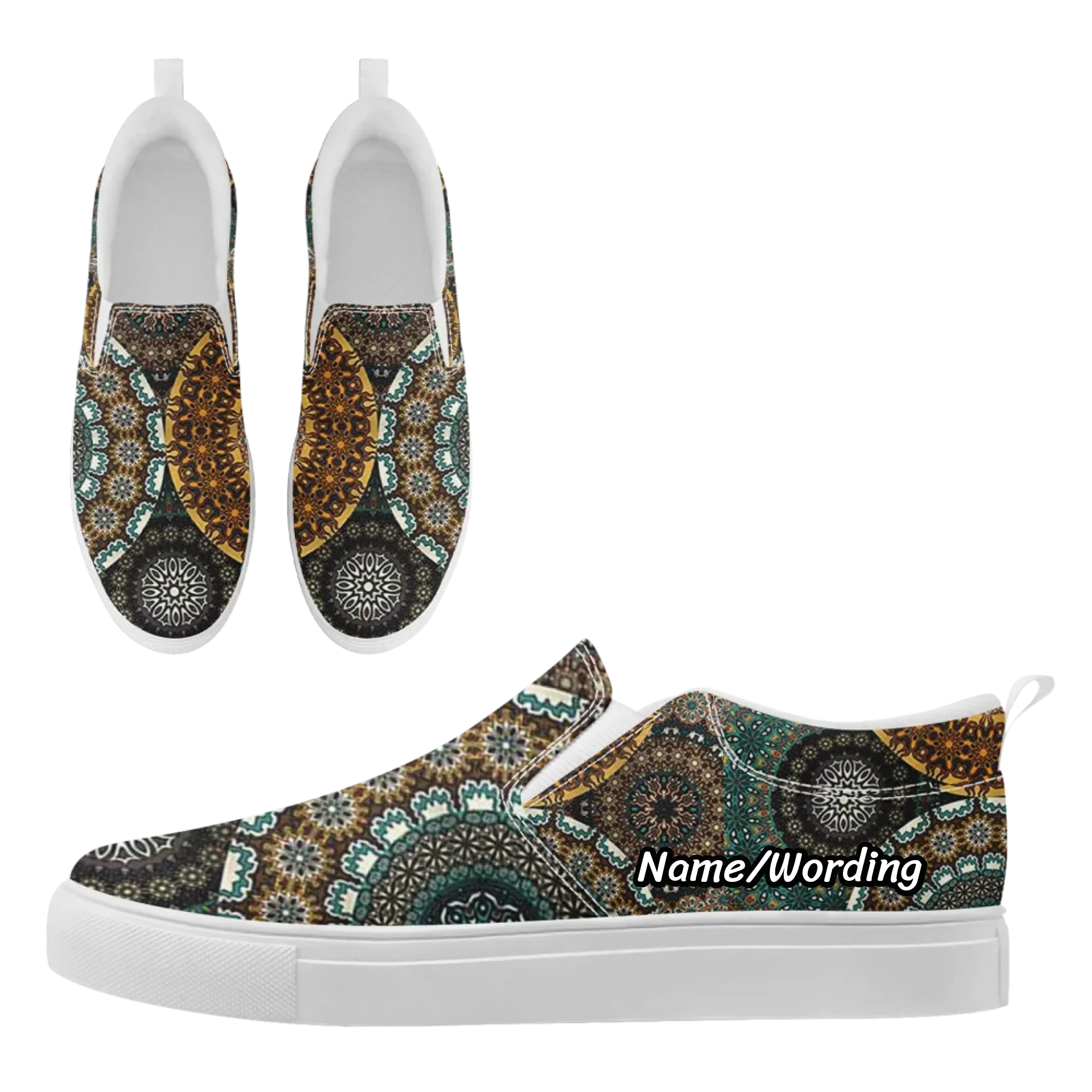 Intricate Pattern Slip-On Canvas Shoes, Bohemian Inspired Casual Loafers FN071-25021060