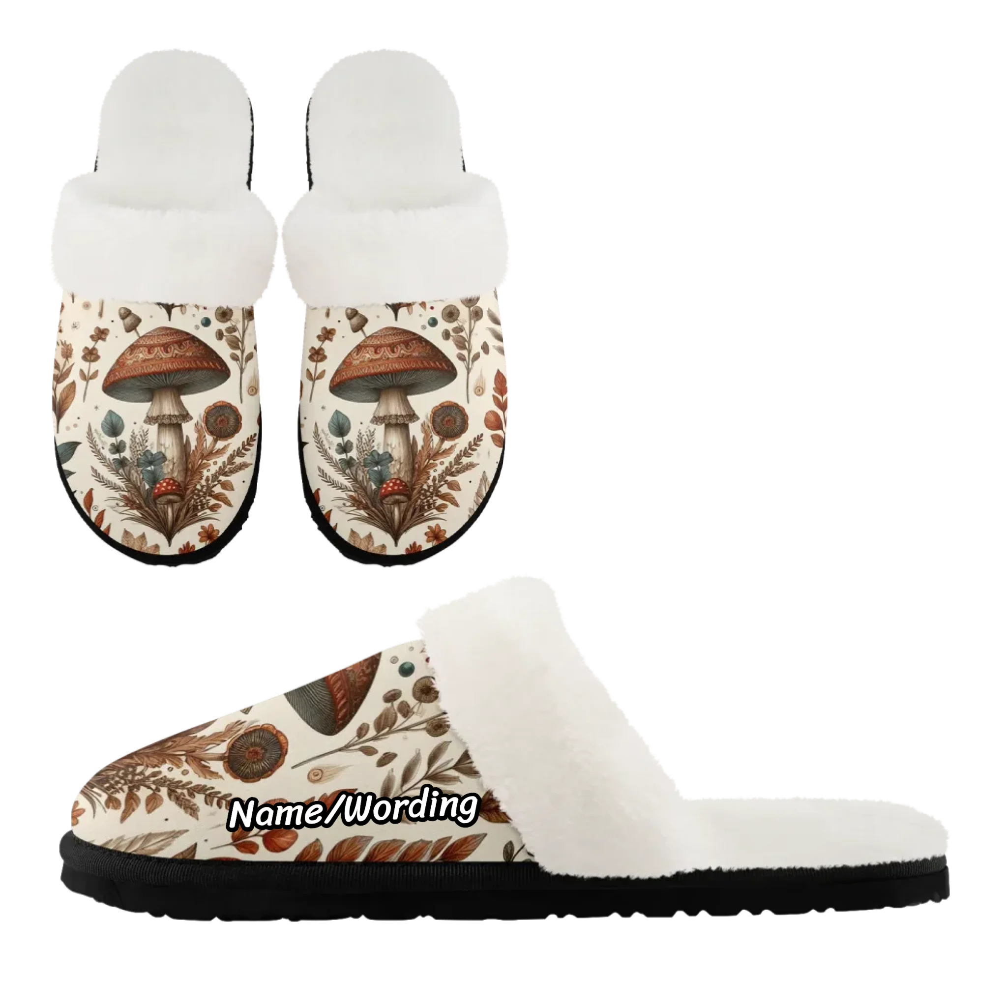 Cozy Botanical Print Plush Slippers, Nature Inspired House Shoes FN089-25025153