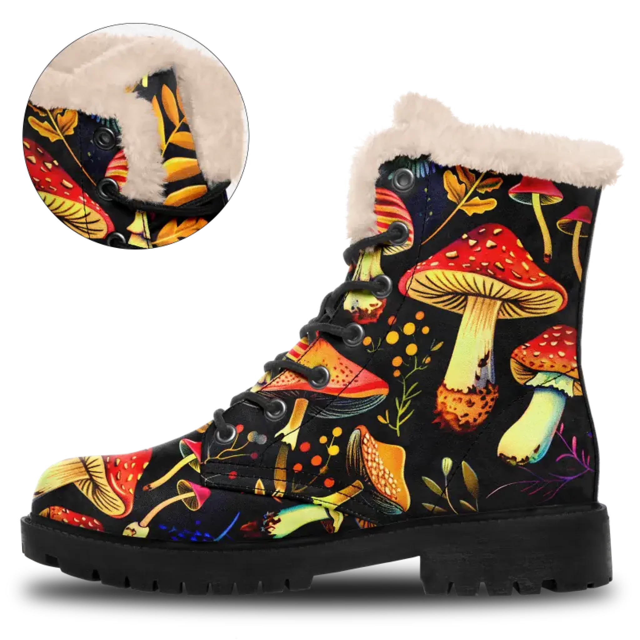 Enchanted Mushroom Dark Forest Fleece Lined Boots, Gothic Cottagegore Winter Footwear 058-25023175