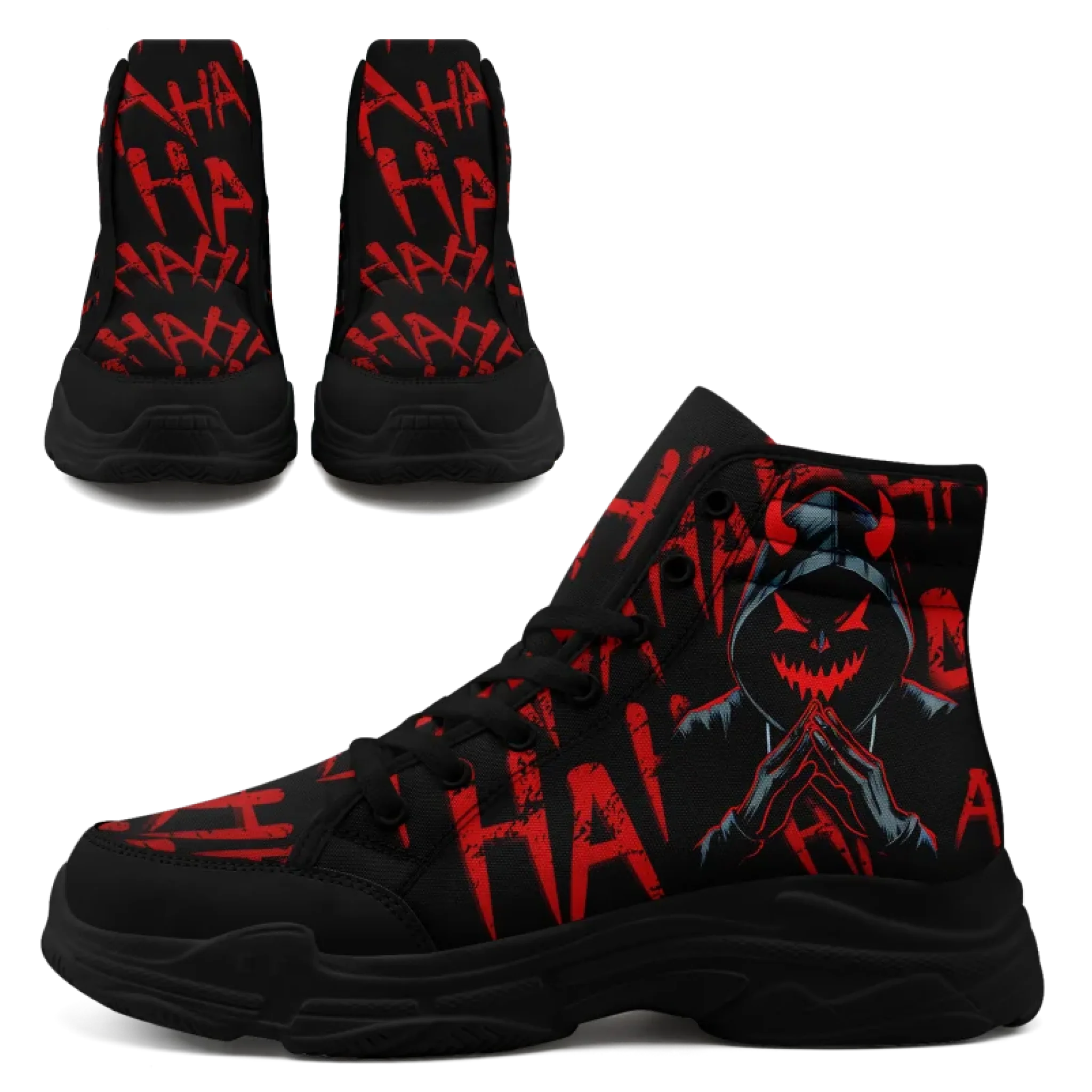 Fluorescent Pumpkin Demon High-Tops - Glow-in-the-Dark Maniacal Laugh Halloween Boots, Gothic Joker Style StreetwearFN033-25027063-1B